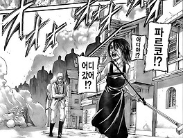 그런 그들 뒤에서 한지가 무방비 상태로 나타나 말을 건다. 그 뒤에는 빈사 상태의 리바이 병장이 있었다.