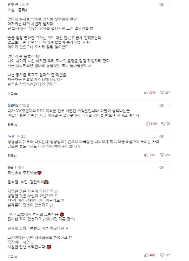 위는 쥴리 관련 기사의 댓글이다. 민주당의 장점은 언제나 상대방이 너무 후지다는데 있는 것 같다. 그 외에 민주당에겐 어떤 장점이 있는 것일까?