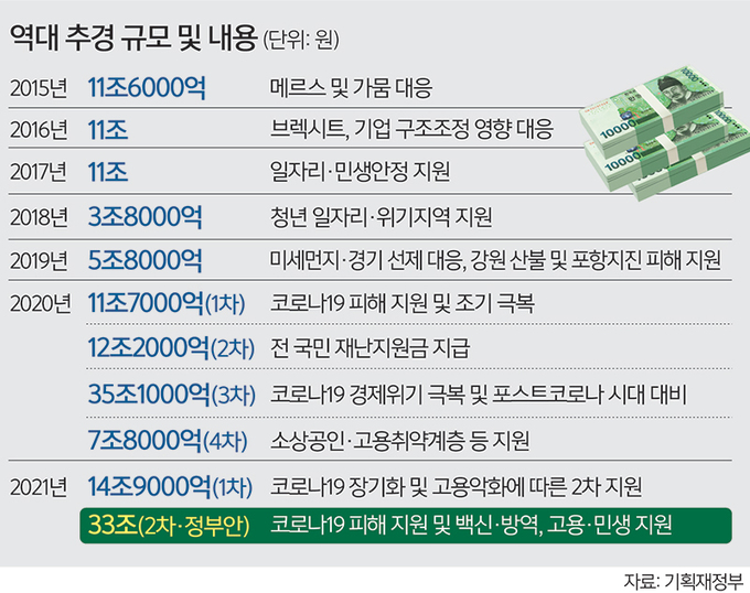 이번 추경은 역대급이다. 그런 역대급 추경에 대통령+180석 권력을 갖고 공정과 도덕적 순결을 자랑하는 민주당은 소득주도차별 카드를 꺼내들었다. 따라서 이번 추경은 역대급 실정으로 기록되어 두고두고 공격받을 것이며, 만일 언젠가 정권이 바뀌면 보수당의 소득주도차별에 힘을 실어줄 소재로 쓰일 것이다.