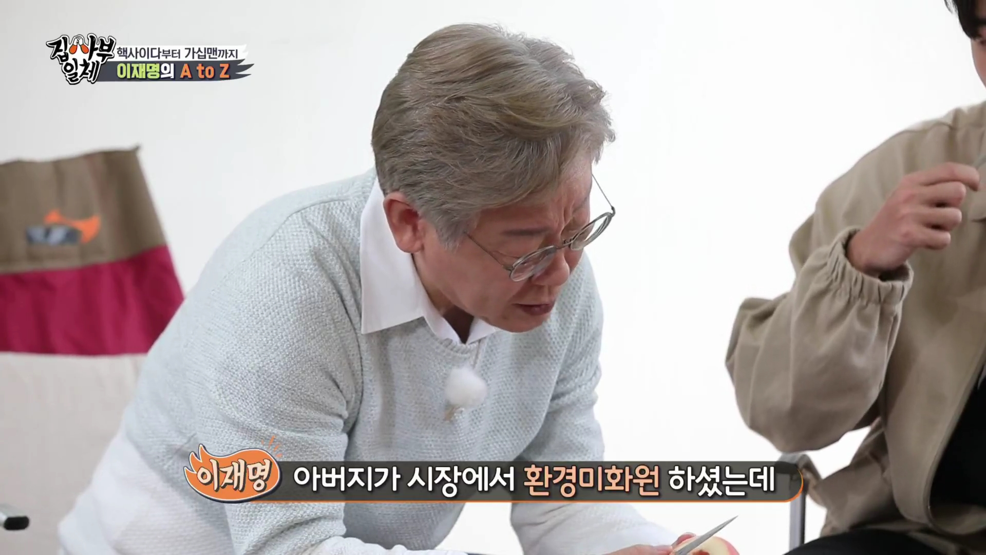 이재명은 워낙 가난한 집 출신이라 아버지가 성남에서 시장 청소원이었고 여동생도 환경미화원으로 살다 돌아가시기도 했다. 아버지가 돈이 없어 가족들 먹이려고 거의 상하기 직전의 과일들을 가져오면 가족들이 아까워서 상하기 전에 다 먹었다고 한다. 그래서 냉장고에 과일 넣어놓고 먹는게 꿈이었고 그 설움이 아직도 남아 경기도 어린이집에 유기농과일 지원하는 사업을 하고 있다고 은근슬쩍 홍보해서 웃음을 자아냈다.