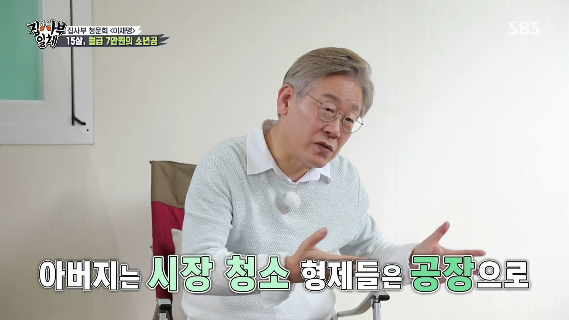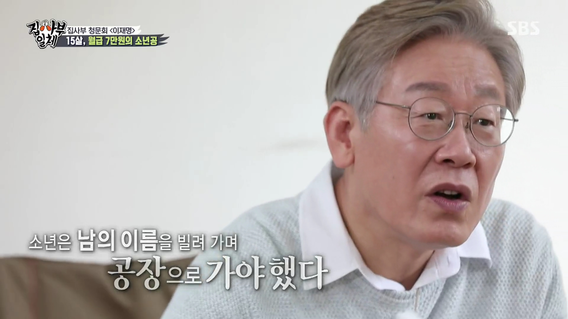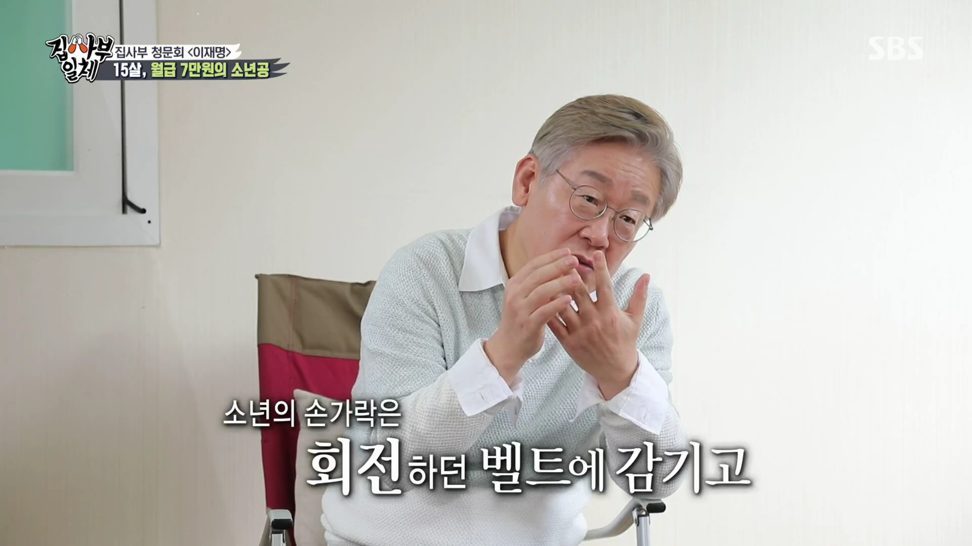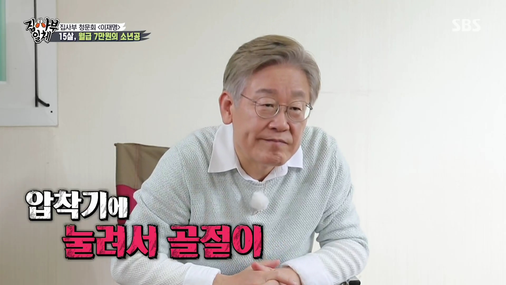 이재명은 찢어지게 가난한 집에서 태어나 자라서 초등학교 졸업 이후 중학교를 못가고 생계를 위해 공장에 다녀야 했다. 아버지는 시장에서 환경미화원으로, 가족들은 공장에 다니는 형편이었다. 당시 미성년자는 자기 명의로 돈을 벌 수 없었기 때문에 동네 형 이름으로 공장에 다녔고, 그래서 프레스에 팔이 끼어 다쳤을때 산재 처리도 못받고 치료만 했다고 한다. 당시 공장은 이재명에게 두려운 곳이었는데, 점심시간에도 철문을 닫아 버렸고, 잦은 야근으로 새벽 2시까지 일하기 일쑤였으며, 통금이 풀리는 새벽 4시까지 공장에서 쪽잠을 잤다. 또 고참들이 재미 삼아 격투기 게임을 붙였는데, 지는 사람이 전원에게 아이스크림을 사야 했다. 이재명은 싸움을 못해 맨날 졌고 자기에게 큰 돈인 아이스크림까지 사줘야 했다. 싸우면 질 것을 뻔히 알면서도 억지로 싸워서 지고 돈까지 잃어야 했던 그 시절이 공포였다고 한다.