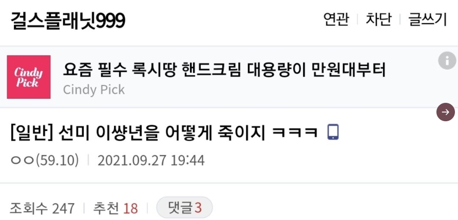 디씨갤 중심으로 선미 까기 시작한거 같은데...설리, 하라 이후로 이런거에 분노를 더 크게 느낀다.