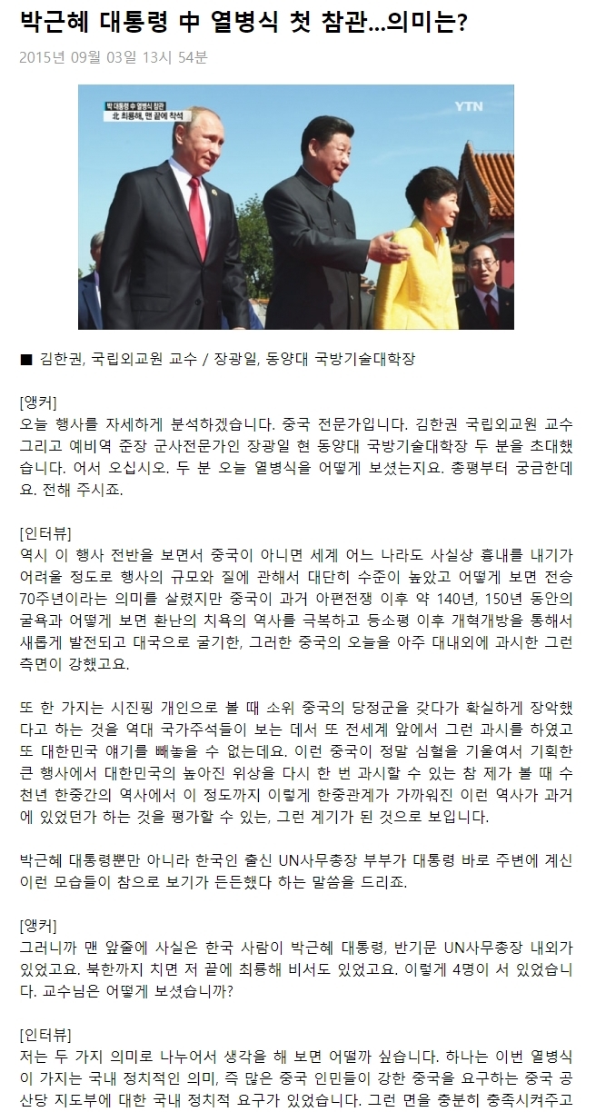 당시 박근혜 대통령과 국민의힘은 겉으로는 친미를 부르짖으며 빨갱이를 때려잡는다고 하면서 실제로는 친중에 속도를 내고 있었다. 박근혜는 자유진영 지도자로서는 최초로 중국 공산군 열병식에 참석했고, 미국은 대노했다. 삼성 등 대기업들은 앞다퉈 첨단기술 공장을 중국에 지었고, 그 결과는 처참했다. 그 공장들은 지금은 거의 문을 닫았다.