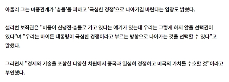 다시 설리번의 입으로 돌아가본다. 바이든과 설리번은 줄기차게 동맹을 강조하며 미중 관계를 '극심한 경쟁'이라 규정하고 있다. 그리고 이 전략의 중심축 중 하나가 한국일 것이다.