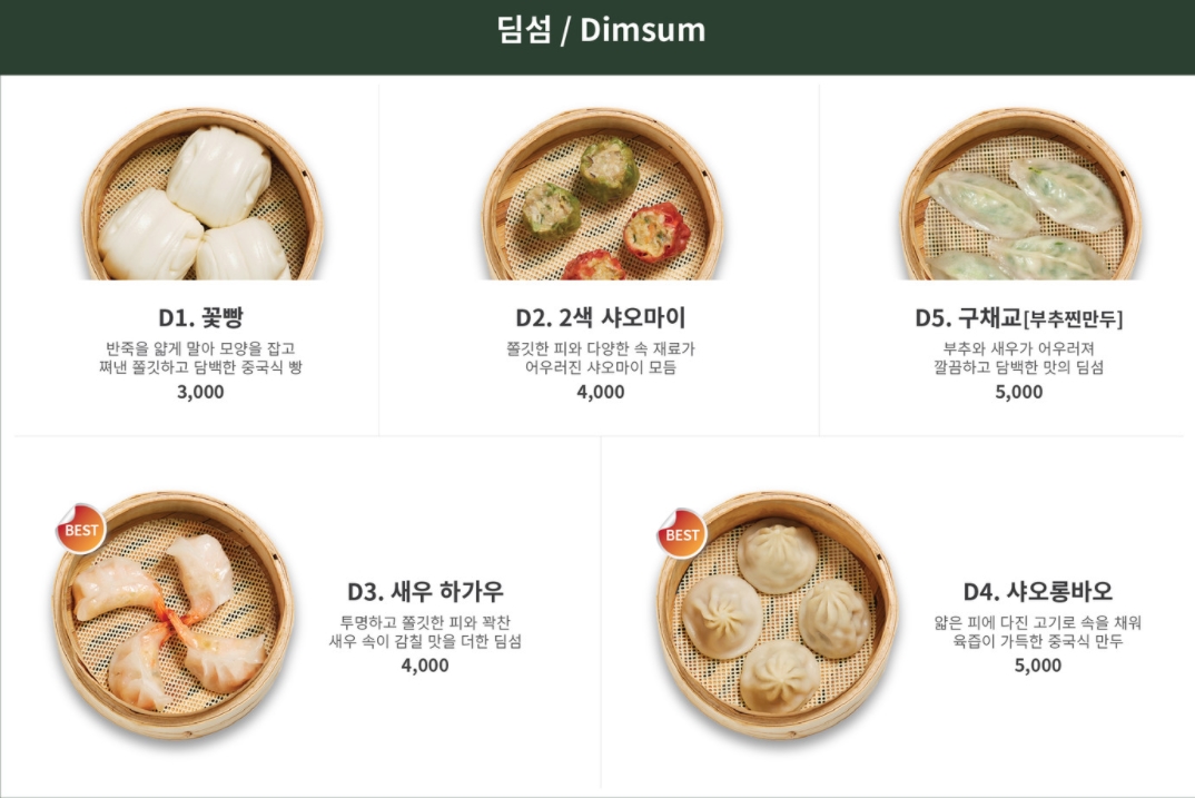 적절한 가격의 딤섬류에 일반 메뉴도 잘 갖추어져 있다.