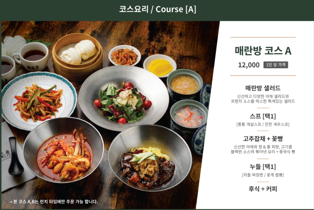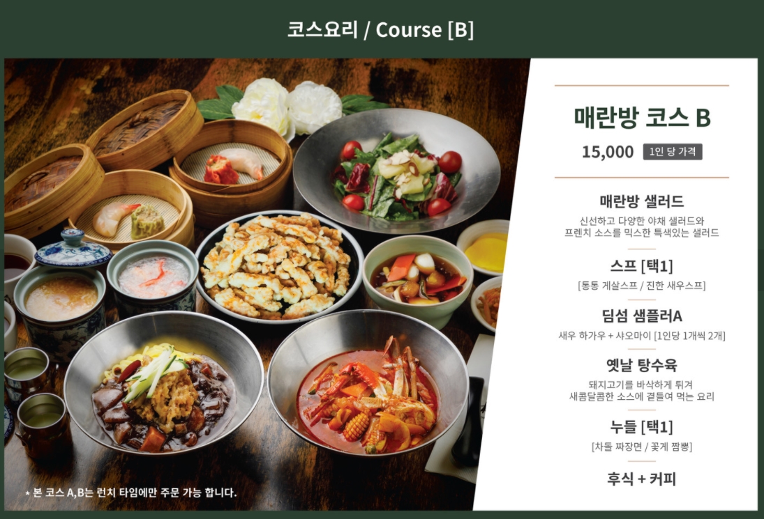 왕십리역 역사 내에 있는 1만원대 코스 요리로 유명한 매란방.