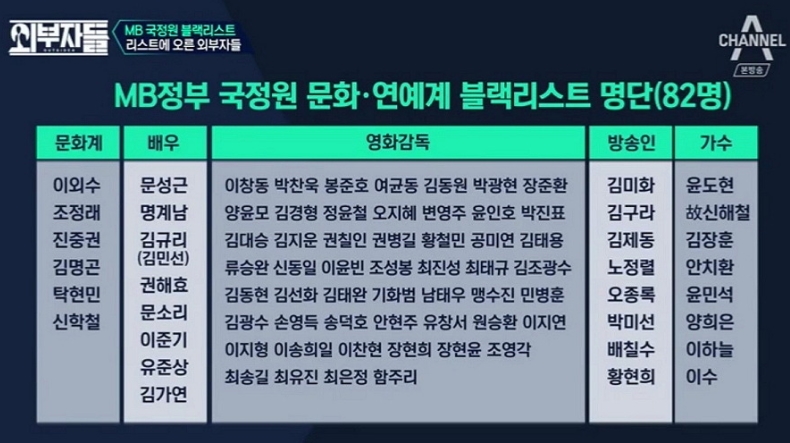 그들은 빨갱이 좌파가 민중예술을 통해 역사를 뒤집었다고 생각하는 것 같다. 그 좌파 중에는 블랙리스트에도 올라 있었던 봉준호 감독 등도 포함될 것이다.