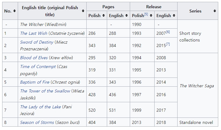 위쳐는 폴란드 작가 안제이 사프코프스키(Andrzej Sapkowski, 1948년 출생)가 쓴 판타지 소설 시리즈이다. 주인공은 리비아의 게롤트인데, '위쳐'란 어린 나이에 초자연적인 능력을 인위적으로 개발해 각종 몬스터류와 싸우는 일종의 헌터이다. 1986년 사프코프스키는 판타지카 잡지가 주최한 공모전에 응모해 데뷔했고 1990년부터 위처 연재를 시작했다. 독자들의 요청으로 1994년부터 위쳐 사가(The Witcher Saga) 5부작을 발표했고, 영어판은 1993년 발표한 마지막 소원이 2007년에야 발매되었다. 1999년까지 위쳐 연재를 마치고 프리퀄인 폭풍들의 계절을 2013년에 출판했다.