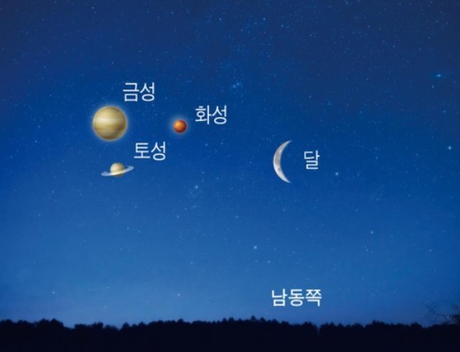 3월 28일엔 금성, 화성, 토성이 달의 좌측에 모이는 모습도 볼 수 있다. 이날 새벽 동틀 무렵 4개 행성(금성·토성·화성·달)이 비교적 서로 가깝게 근접한다. 옛날엔 이런 현상도 점성술적으로 해석했을텐데 싶다.