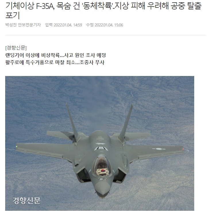 F-35가 개발되어 판매된 이후 한국에서 동체 착륙이 사실상 처음