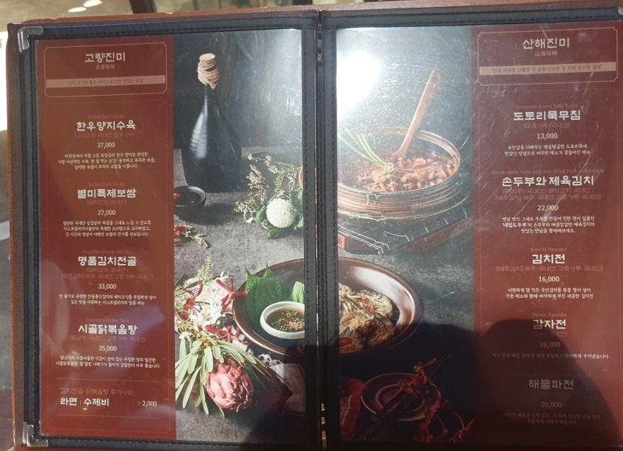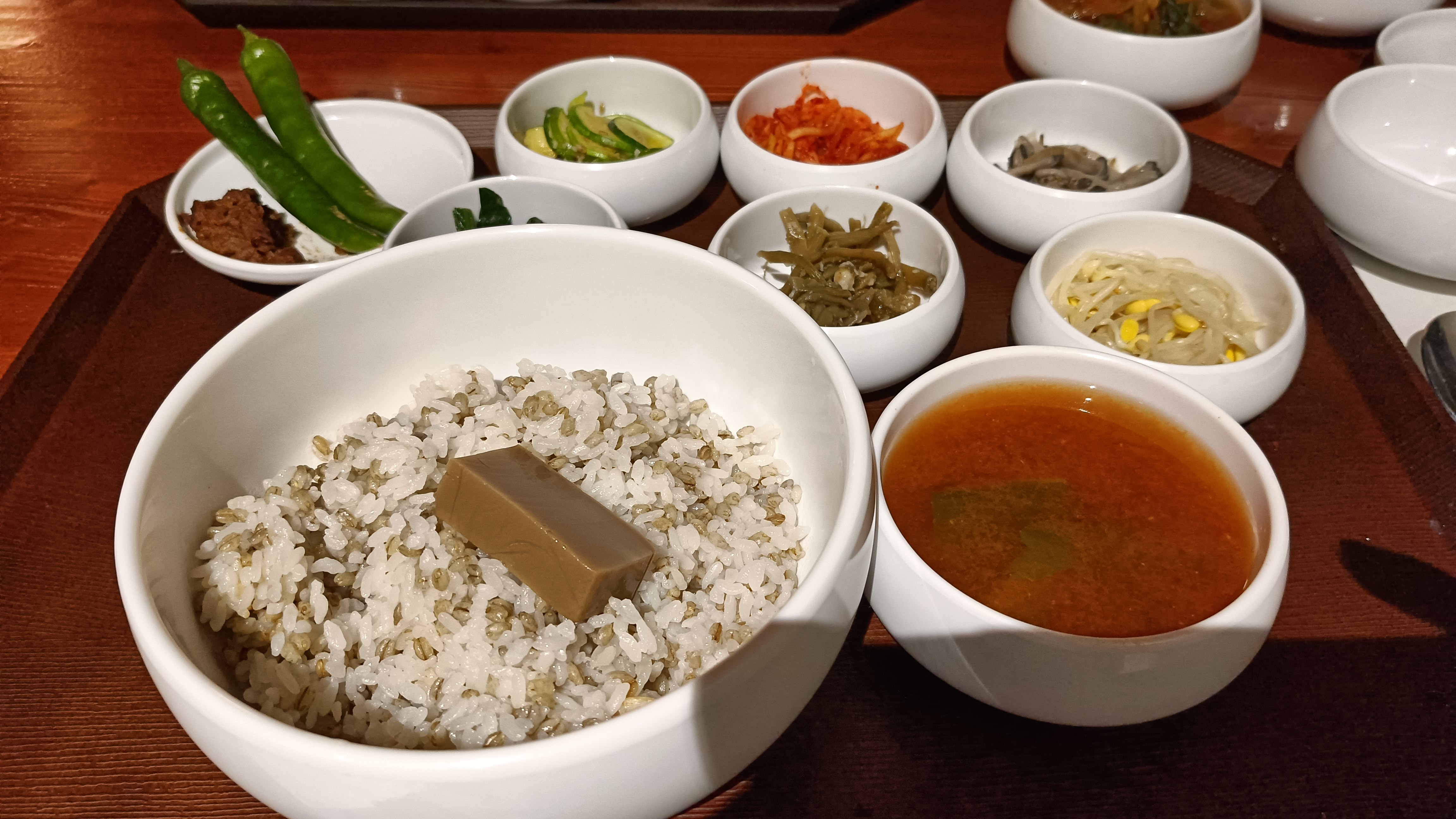 그러나 직접 들어가서 메뉴를 살펴본 결과 나는 그냥 도토리묵무침을 시켰다. 나머지는 너무 비싸서 모험을 하기 싫었고, 오랜만에 보리밥에 도토리묵을 먹는게 나을거 같아서였다.