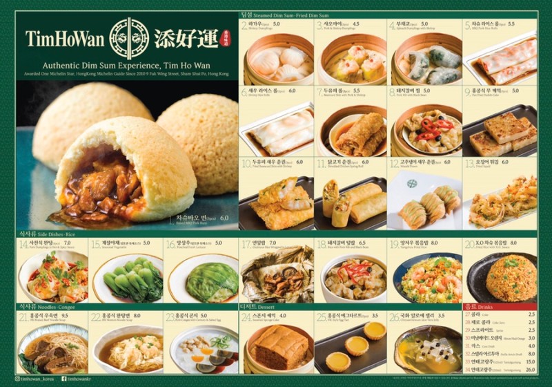 메뉴는 딤섬과 면, 밥 등이며 완전 홍콩식이라 한국식 중식당 메뉴와는 많이 다르다.