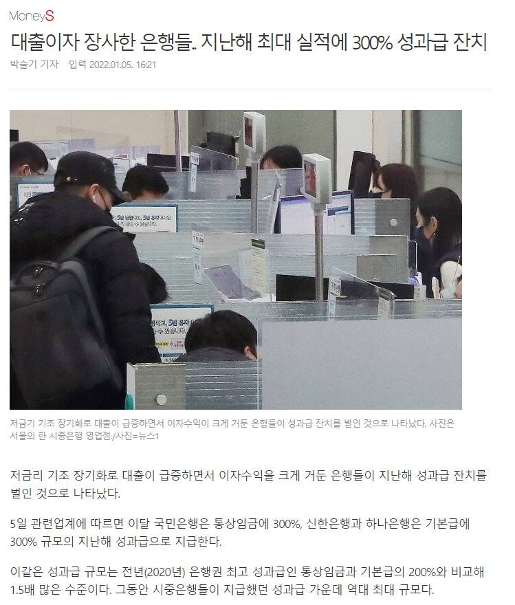 선진국을 능가하는 방역을 해냈음에도 미국 수준으로 금리를 낮춰 자산 가격 폭등을 주도한 한국은행과 기재부 관료들, 전직 기재부 출신들로 구성된 금융마피아들에게 이 책임을 물을 준비를 해야 한다. 한국 은행권은 작년 역대 최고 실적을 거두고 돈잔치를 벌였다. 그들이 재난지원금 지급에 대해 국가부채를 방패로 한사코 반대하는 것은 금융권의 대출이익이 감소하기 때문이라고 나는 혼자 생각하는 바이다.