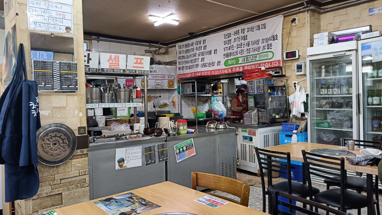 수유동, 수유리, 우이동 쪽에 기사식당들이 몇 개 있는데 그 중 가장 유명한게 이곳 진미기사식당이다. 각종 현수막으로 그동안 출연했던 프로그램들이 빼곡히 적혀 있다.