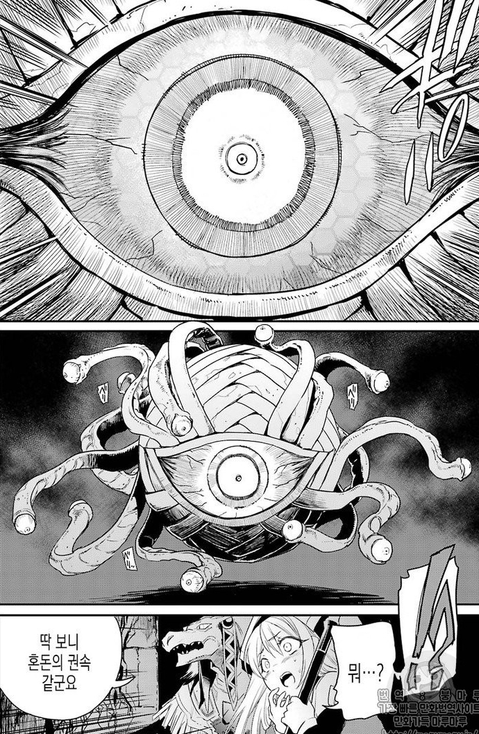 25화에 나왔던 '전이의 문'을 지키고 있던 이 생명체는 이름도 종족도 없는 일종의 마법 생명체였다. 이런 생명체는 대개 혼돈의 권속이라는 큰 틀로 불린다. 이 생명체는 모든 주문을 반사하는 디스펠과 디스인티그레이트라는 강력한 분해마법을 사용했으나 역시 고슬의 전략과 파티의 전투력에 의해 사망했다. 미궁에는 이런 일종의 혼돈의 고위 생명체가 만든 권속이 다수 존재할 것이다.
