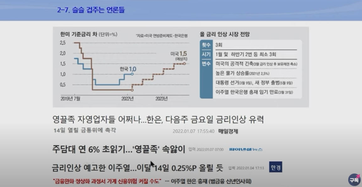미국이 금리를 올리기 시작하면 한국 등 다른 나라들은 달러 유출을 막기 위해 미국보다 높은 금리를 유지해야 한다. 부채가 많은 사람과 기업들은 더 큰 이자비용을 부담해야 하고 이로 인해 갖고 있던 자산을 매각하려는 경향이 높아지며 시장에 매물이 쏟아질 수 있다. 이는 자산가격의 하락을 의미한다.