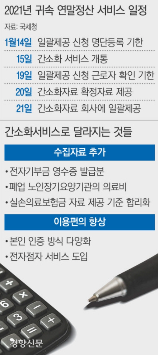 홈택스 연말정산 간소화 서비스가 15일 개통된다. 2022년 올해부터는 근로자가 일일이 자료를 준비하지 않아도 국세청이 회사에 직접 자료를 전달하는 ‘간소화 자료 일괄제공 서비스’가 실시된다.
