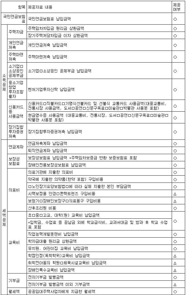 * △표시된 자료는 제출기관이 제출해야 할 의무는 없지만 자율적으로 제출하는 자료이므로 조회되지 않을 수도 있음