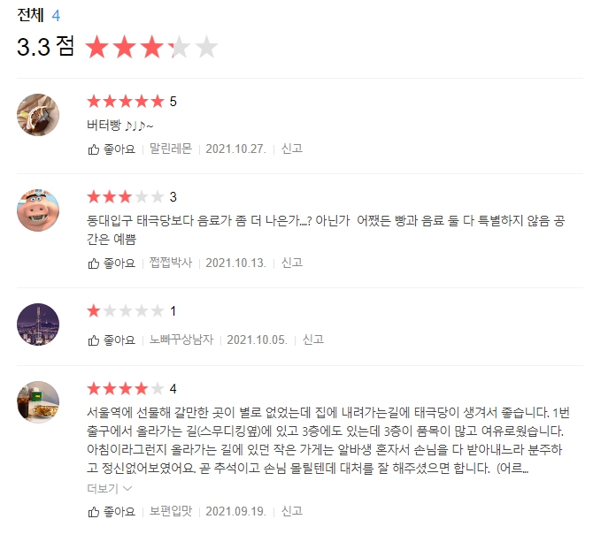 서울역점은 평점이 없어서 서울역광장점으로 대신한다.