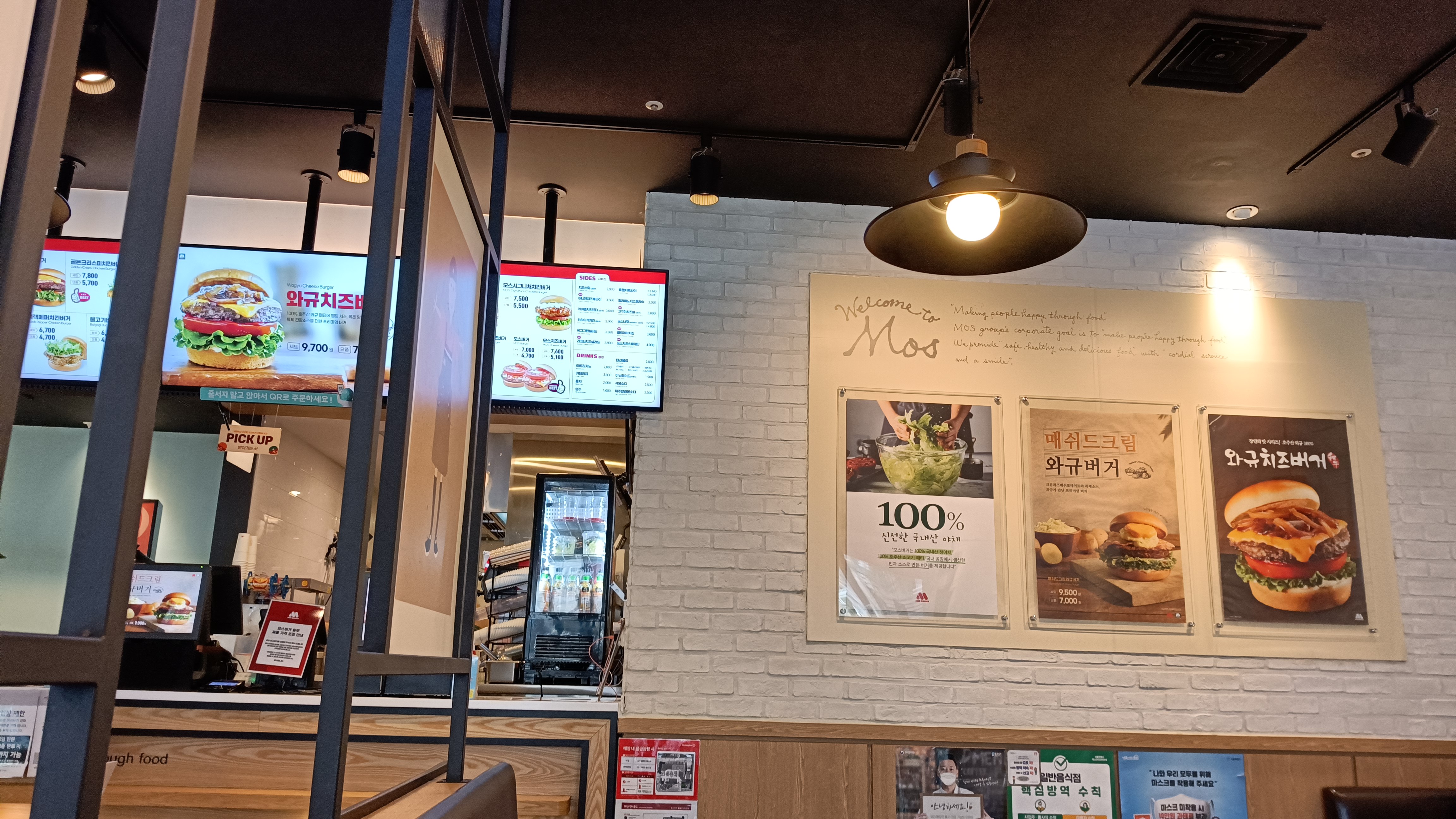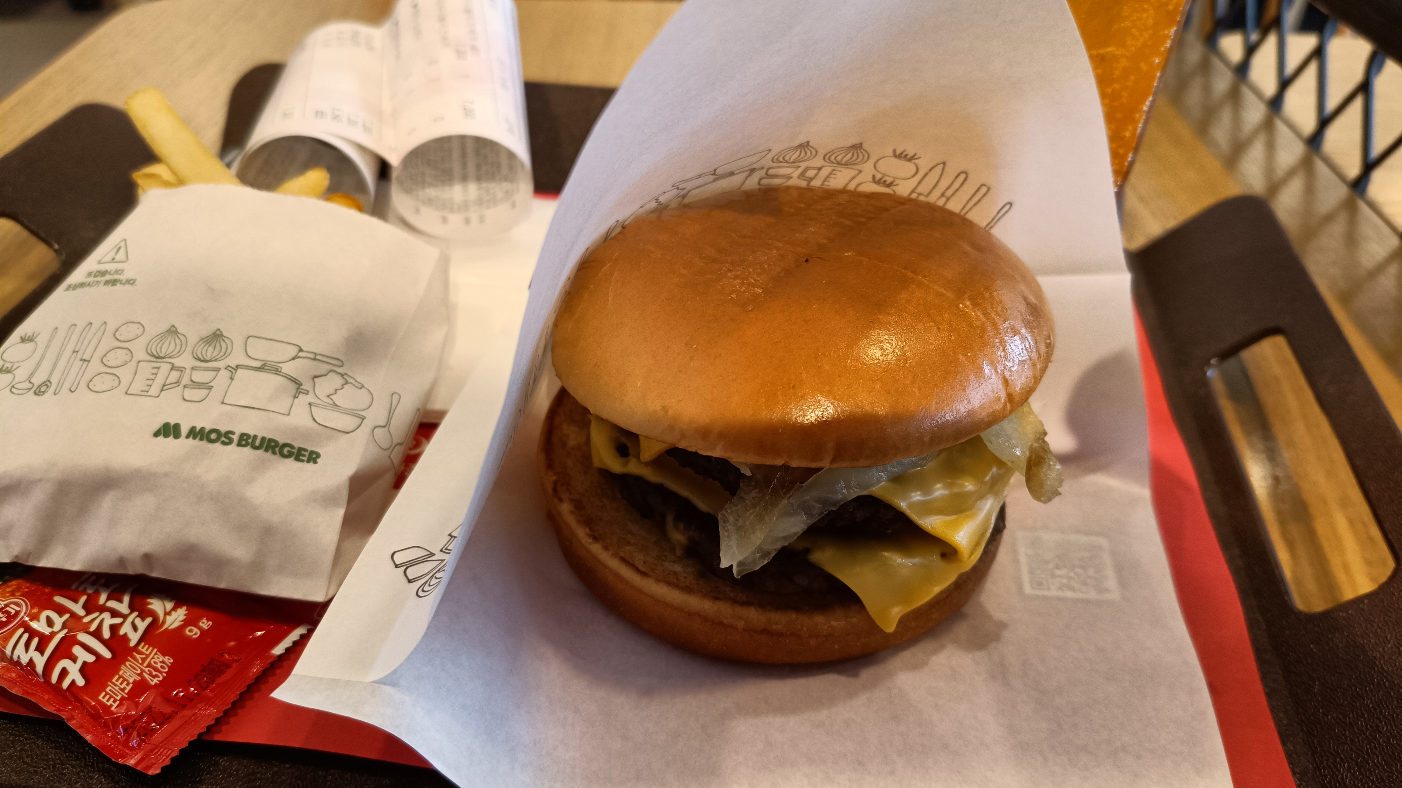 별 고민 없이 모스버거 세트를 시켰다. 6,600원에 음료 리필 가능, 감자튀김이 같이 나온다.
