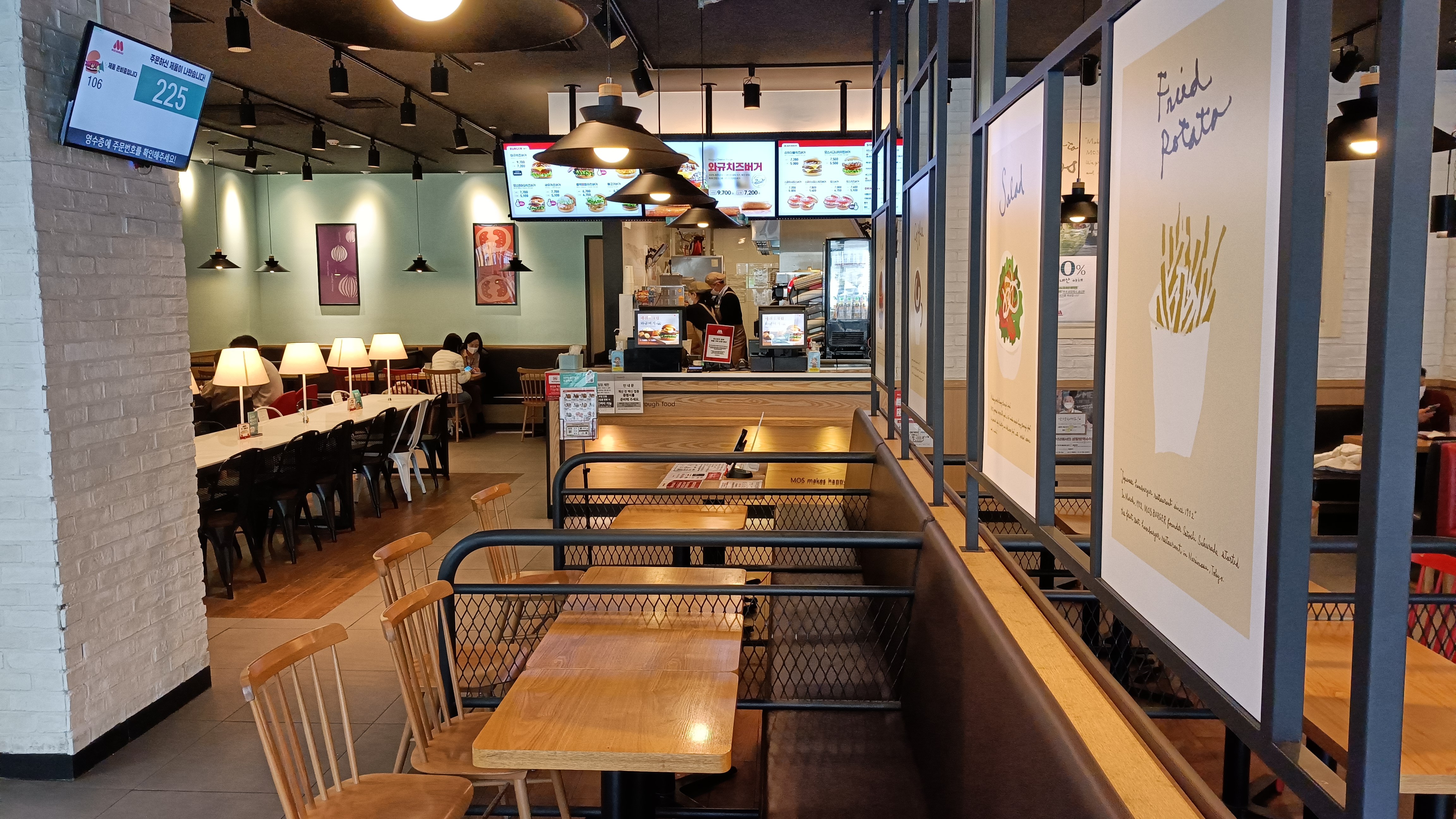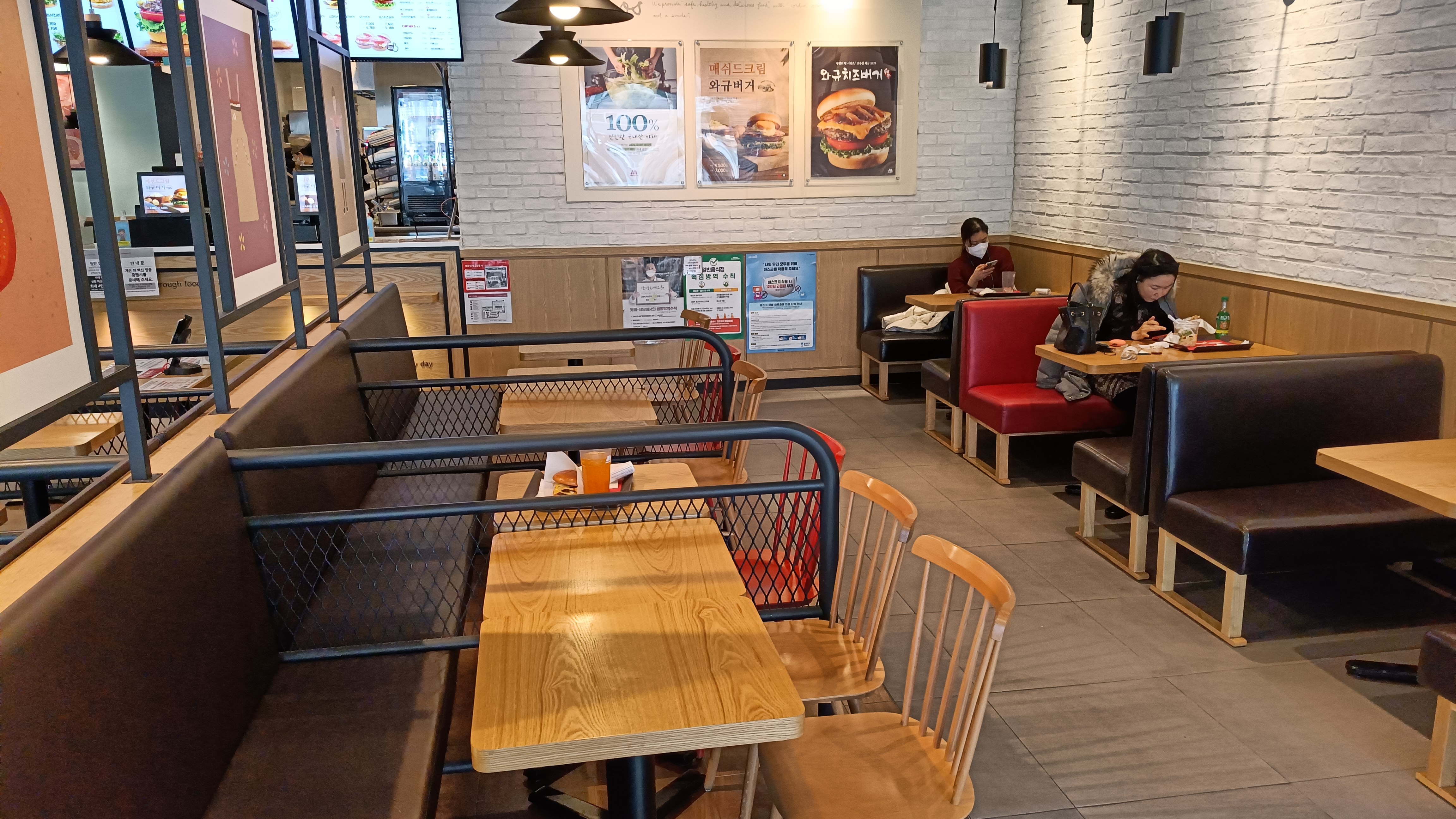 실내가 꽤 넓다. QR코드를 카운터 앞 별도 테이블에서 체크할 수 있어 편리했다.
