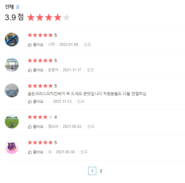 평점은 역시나 높은 편. 직원들도 친절했다. 다른 버거들도 맛이 좋은 듯. 다음번엔 치킨버거도 도전해 봐야겠다.