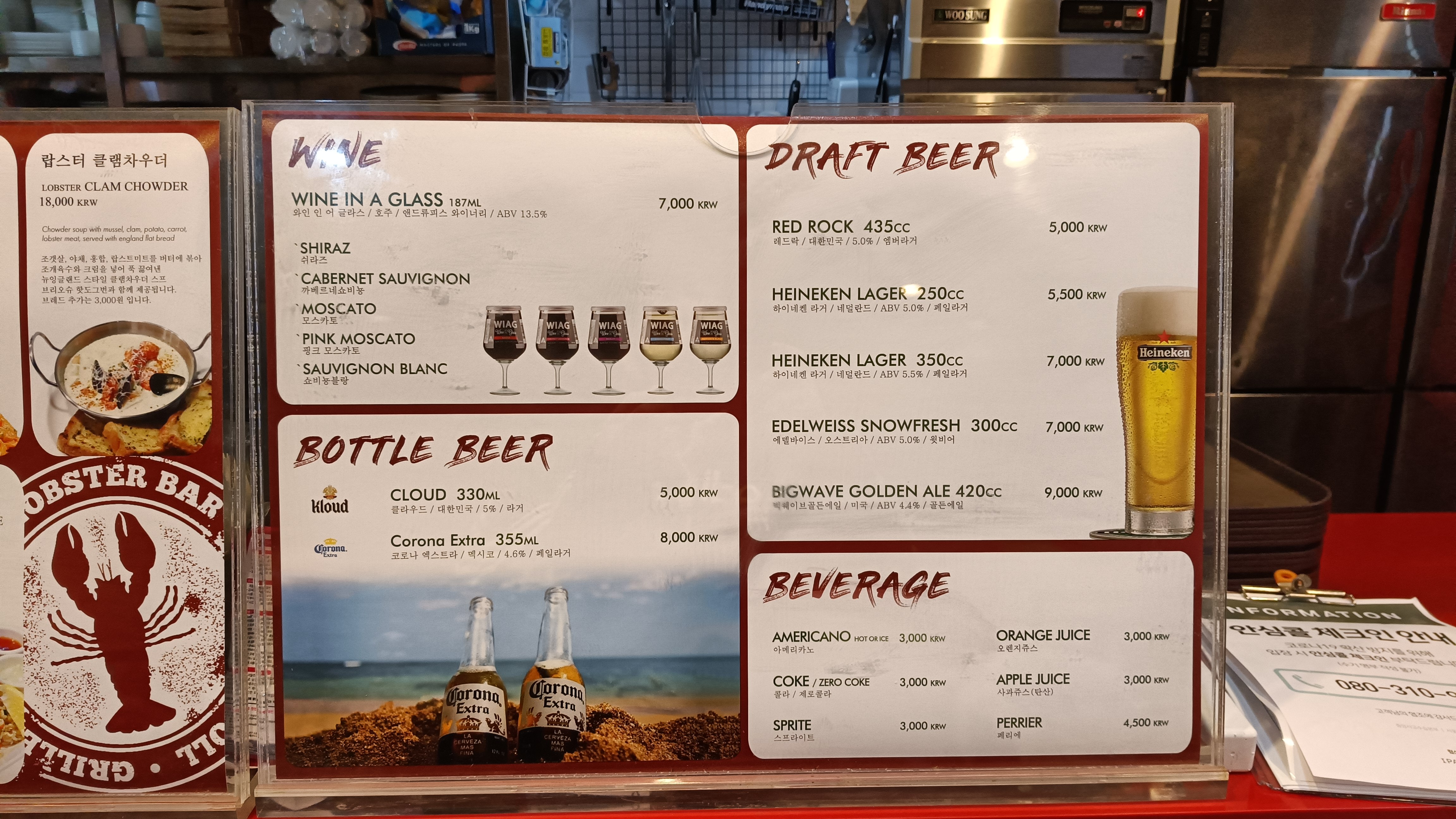 창가를 끼고 좌석도 꽤 많았다. 나로서는 처음 가본 랍스터바.
