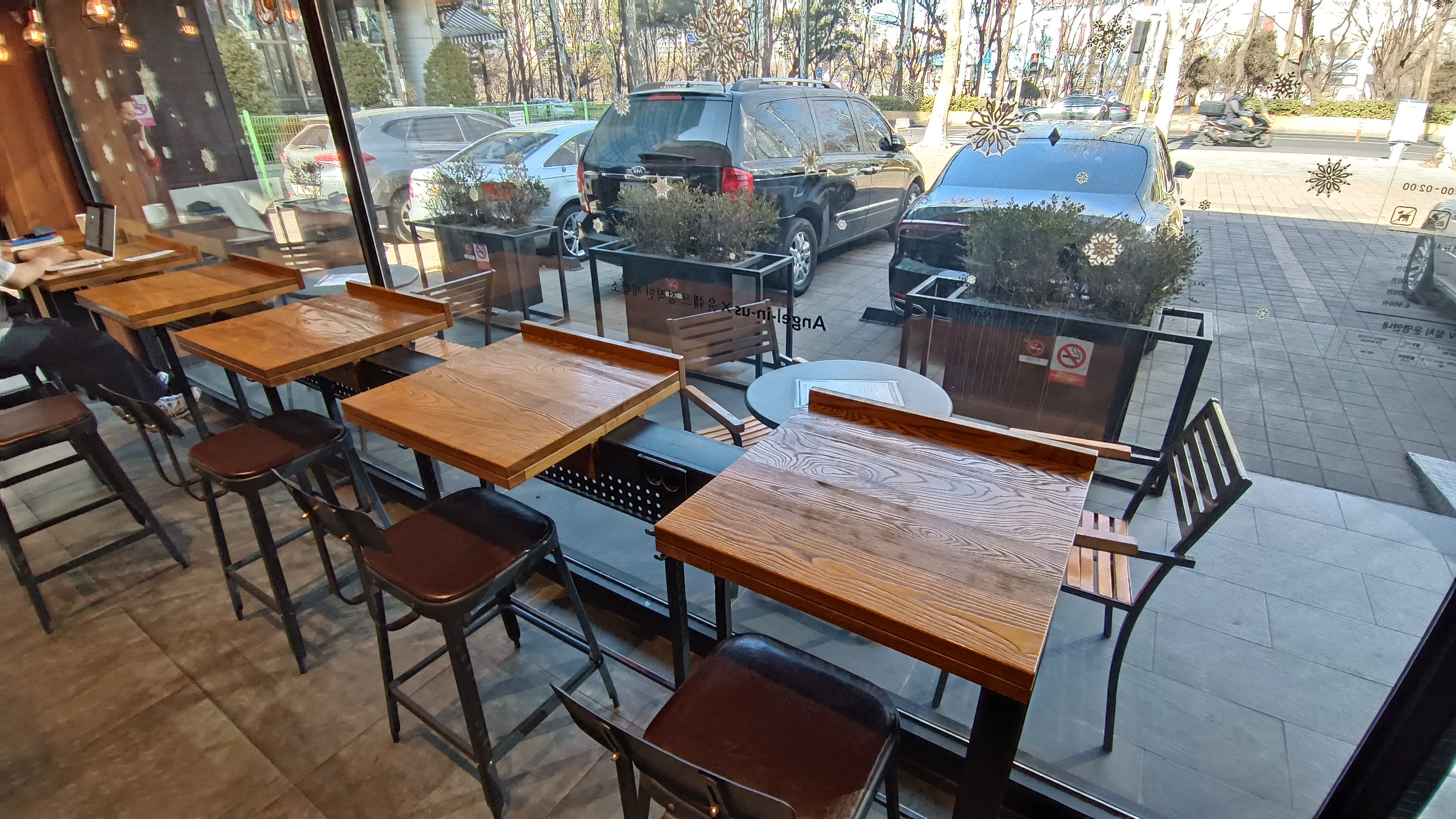 다양한 테이블이 배치되어 있다. 혼자 노트북하며 일하기에 좋은 장소도 보인다.