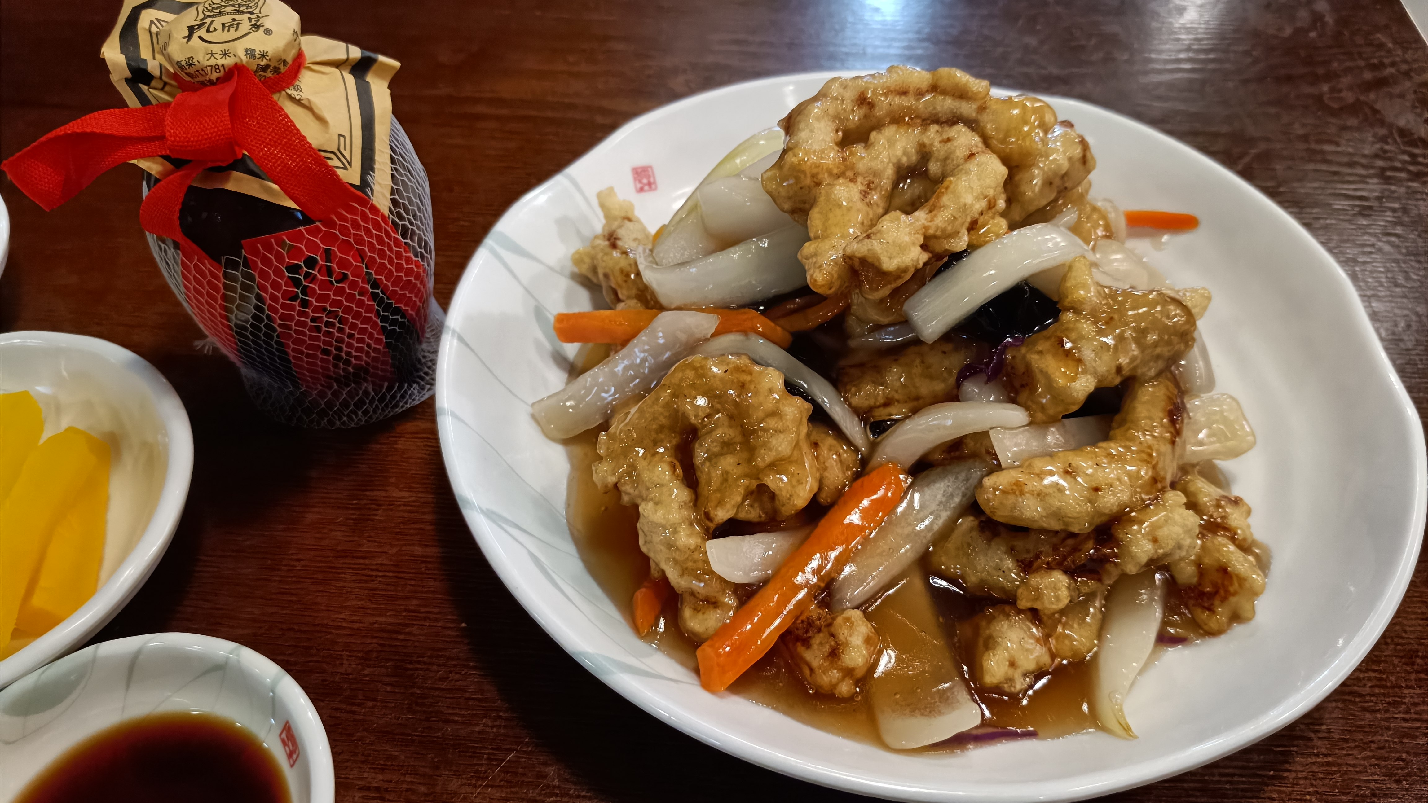 먼저 나온 탕수육과 공부가주. 탕수육은 찍먹의 기회를 주지 않는다.