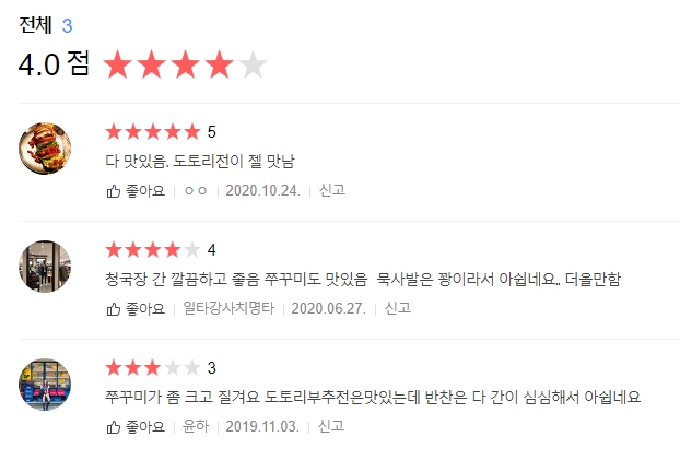 평점은 몇 개 안 되지만 높은 편. 나도 비슷한 점수를 주고 싶다. 가성비가 있고 이마트 주차 지원도 된다. 이마트는 대개 1만원 1시간 3만원 2시간이라 식사만으로 주차 이용이 가능하다는게 장점.