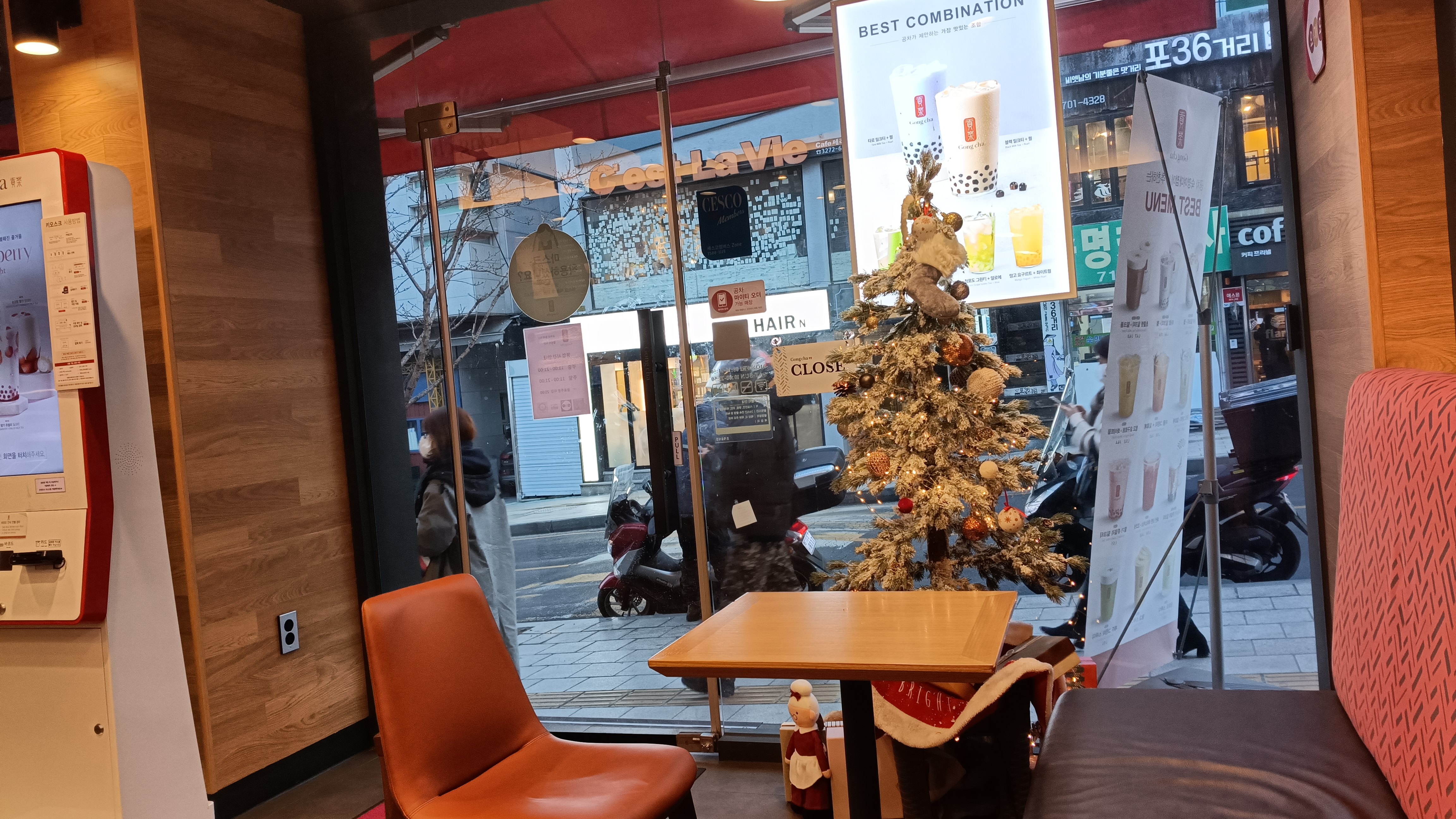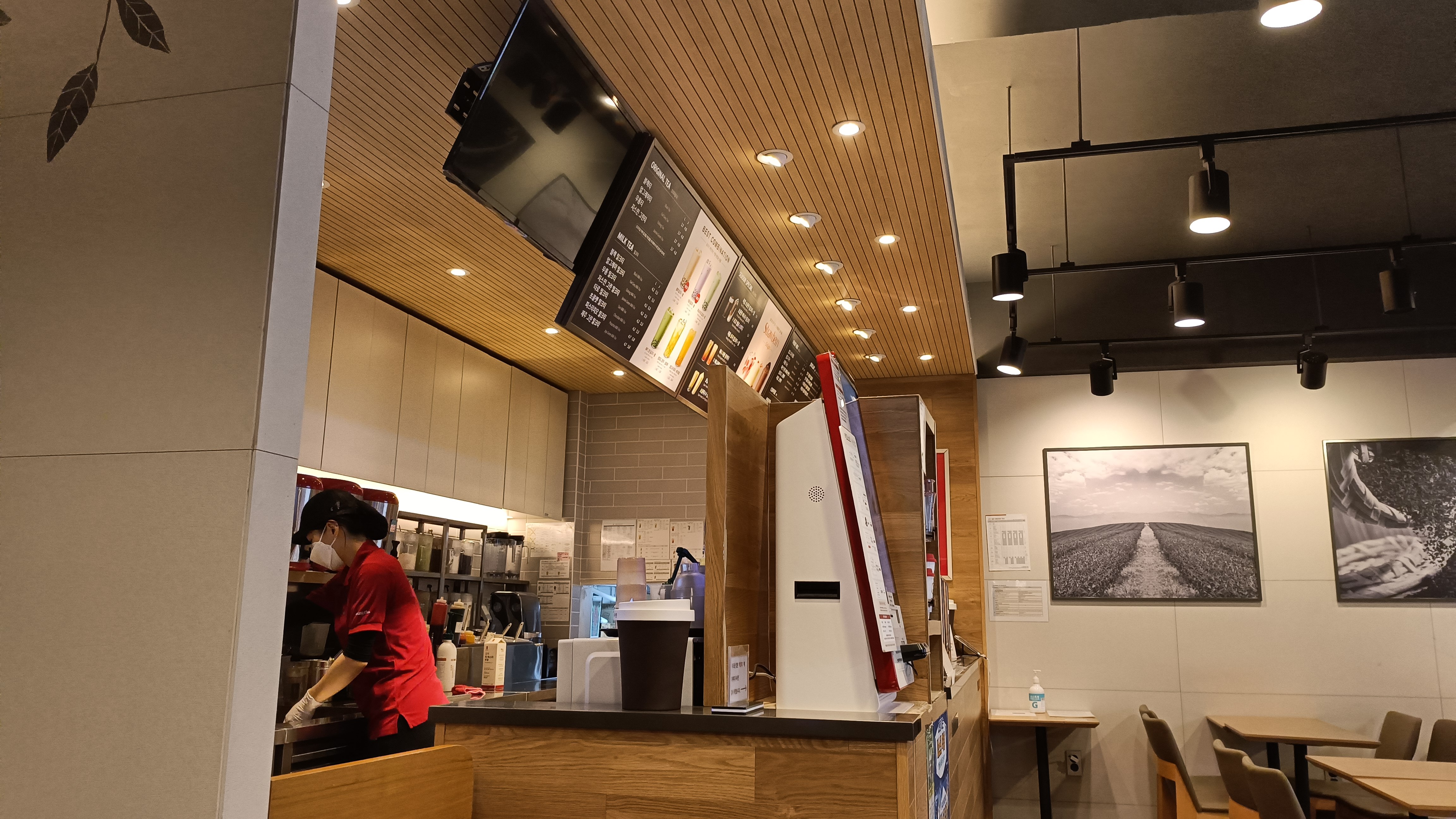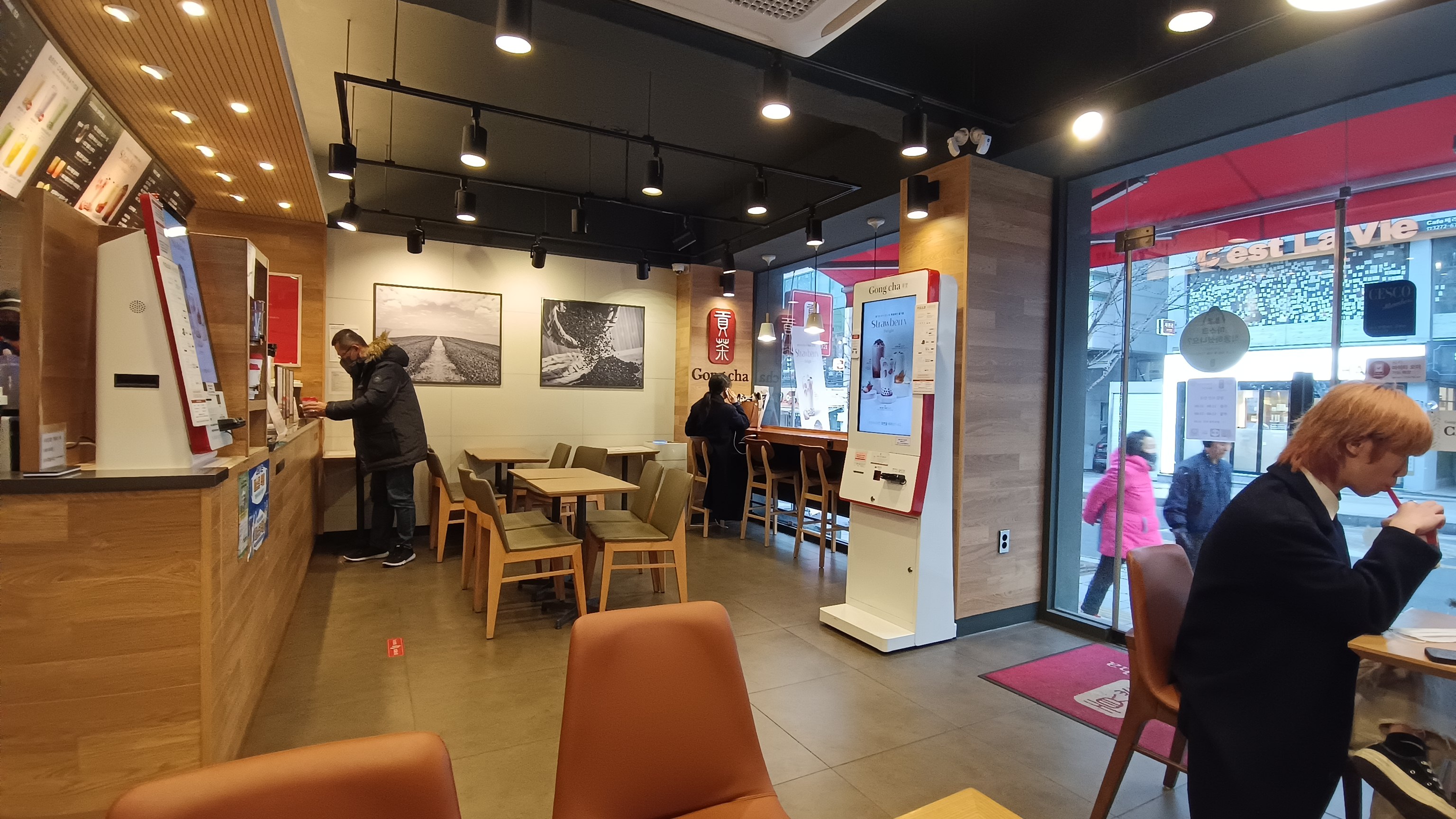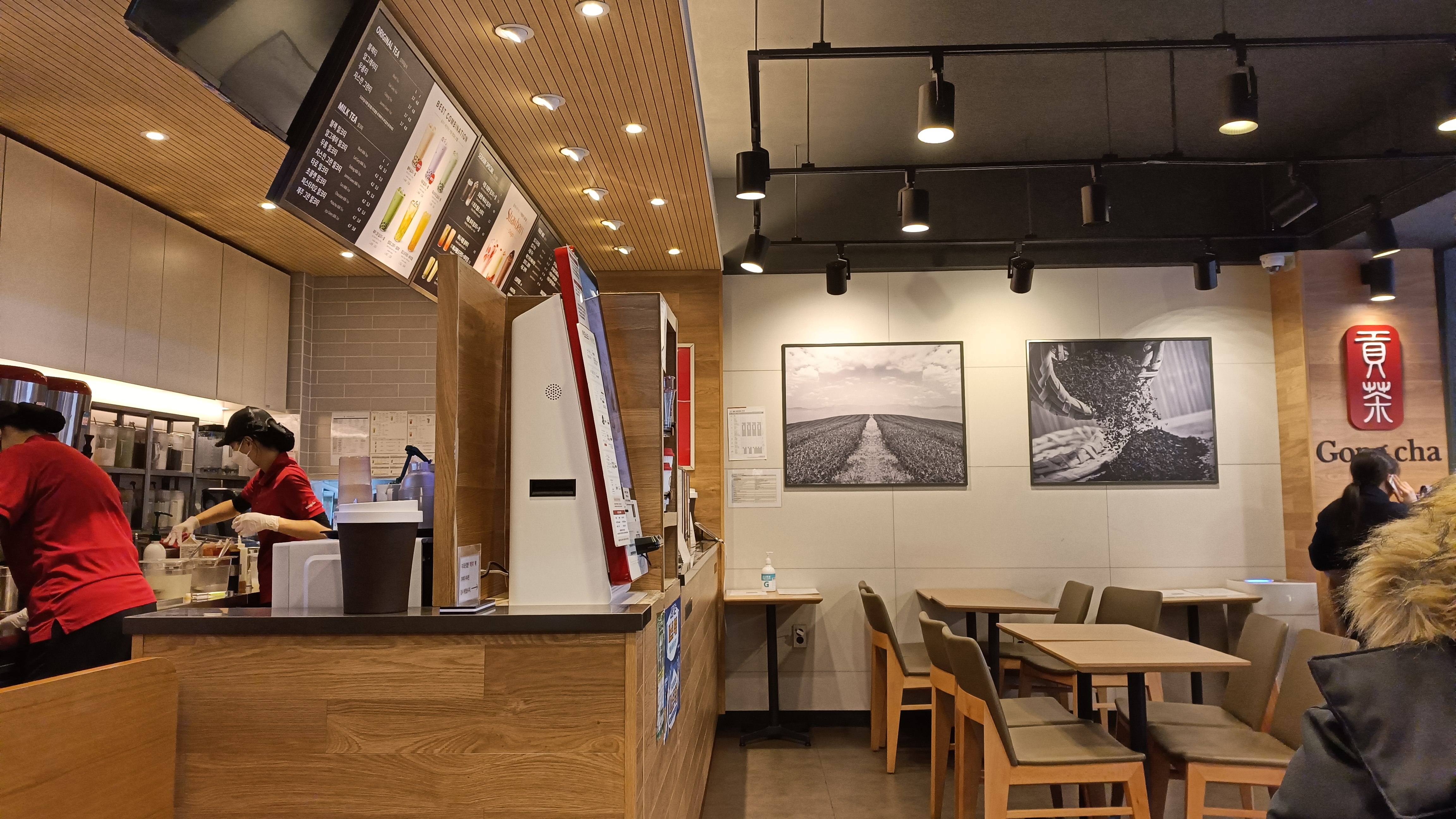 실내 분위기는 이렇다. 공차 치고는 테이블이 적지 않은 편이었고, 창가쪽 좌석에는 전원 소켓이 보였다. 학교 앞이고 유동인구도 많아 찾는 사람이 많을 것 같다.