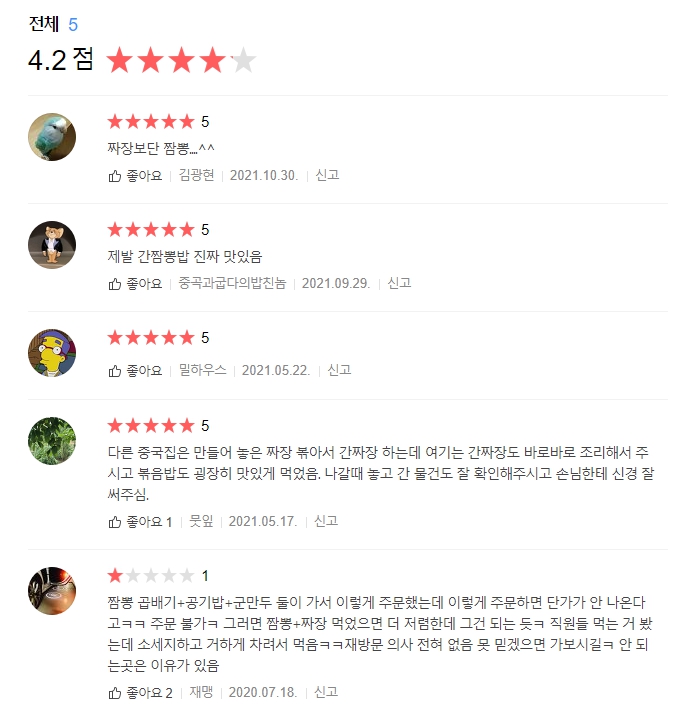 각각의 메뉴들은 이렇다. 맛도 괜찮은편. 개인적으로 짬봉은 너무 오랜만에 먹어봐 비교평가가 불가하다. 유린기와 군만두 등은 준수했다.