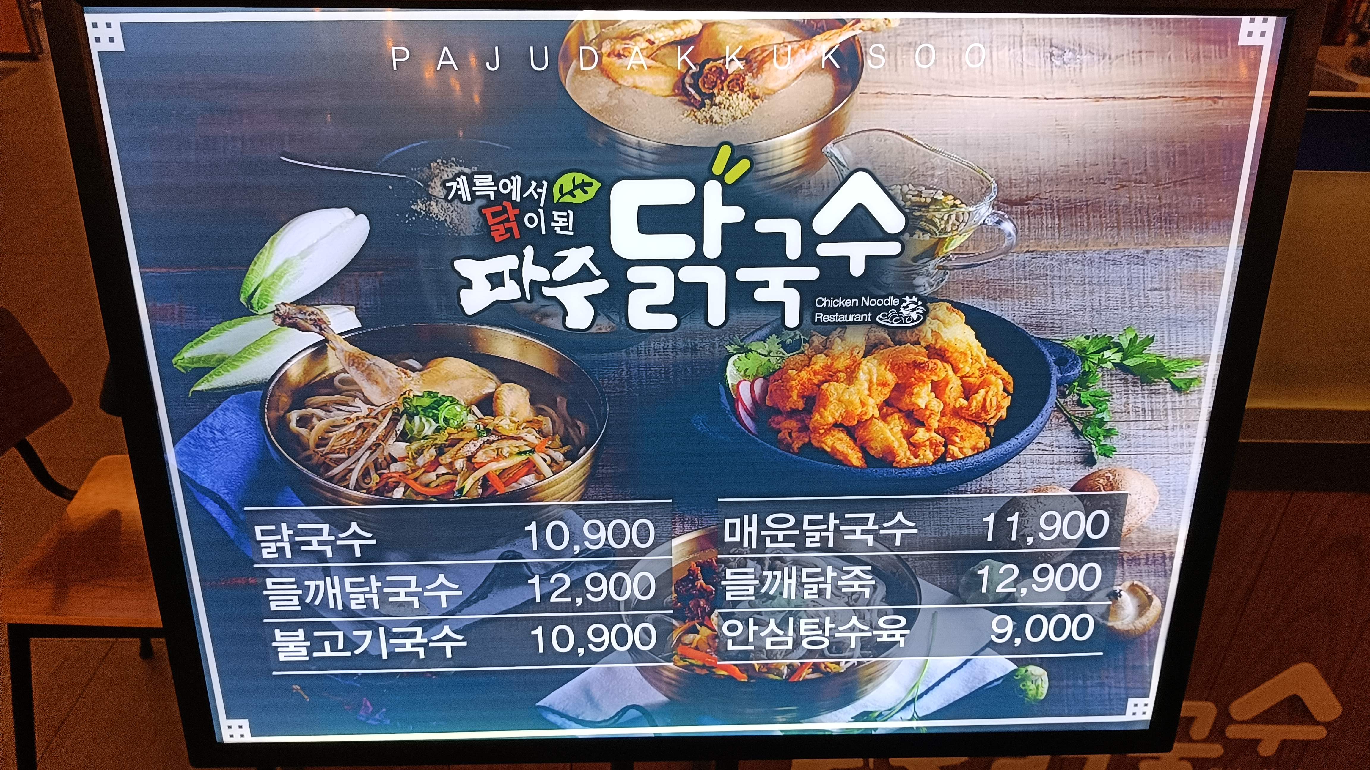 시그니쳐로 보이는 닭국수 10,900원 주문.
