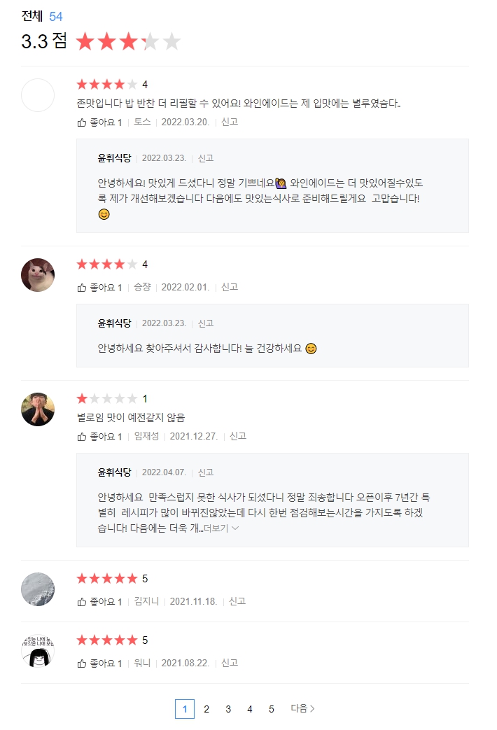 평점은 생각보다는 낮은 편. 주차, 맛과 양, 리필 등을 생각하면 개인적으로는 별 4개짜리였다.