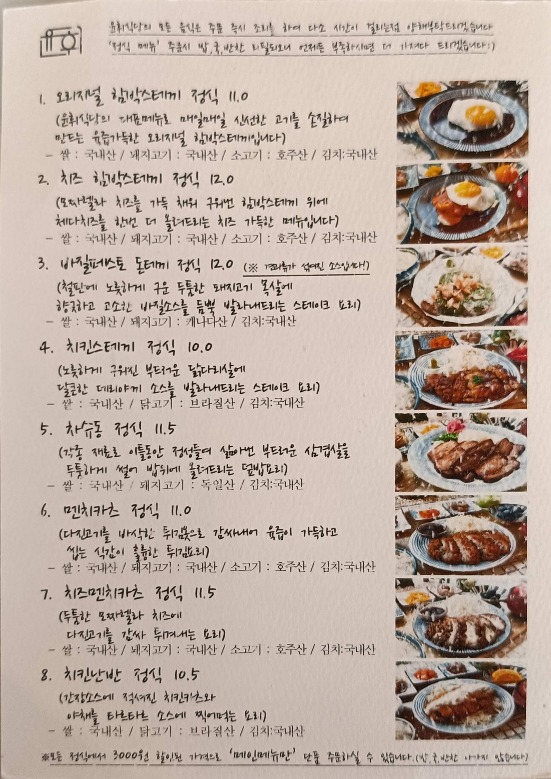 시그니쳐 메뉴인 오리지널 함박스테끼 정식을 시켰다. 이정도면 가성비 있고 맛도 있는 편이다.