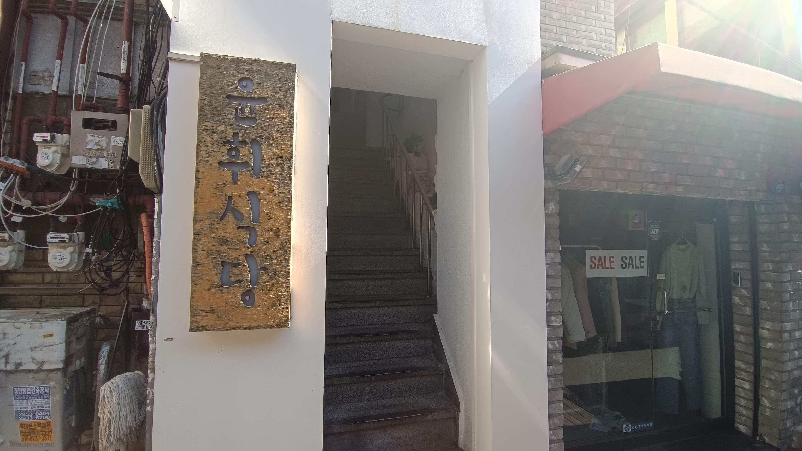 좁은 계단을 올라가면 바로 윤휘식당이 나온다.