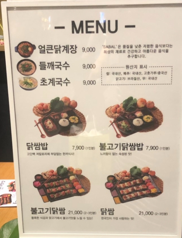 닭쌈밥이라는 독특한 메뉴가 있어서 들어가 본다. 닭쌈 2~3인분 21,000원을 주문.