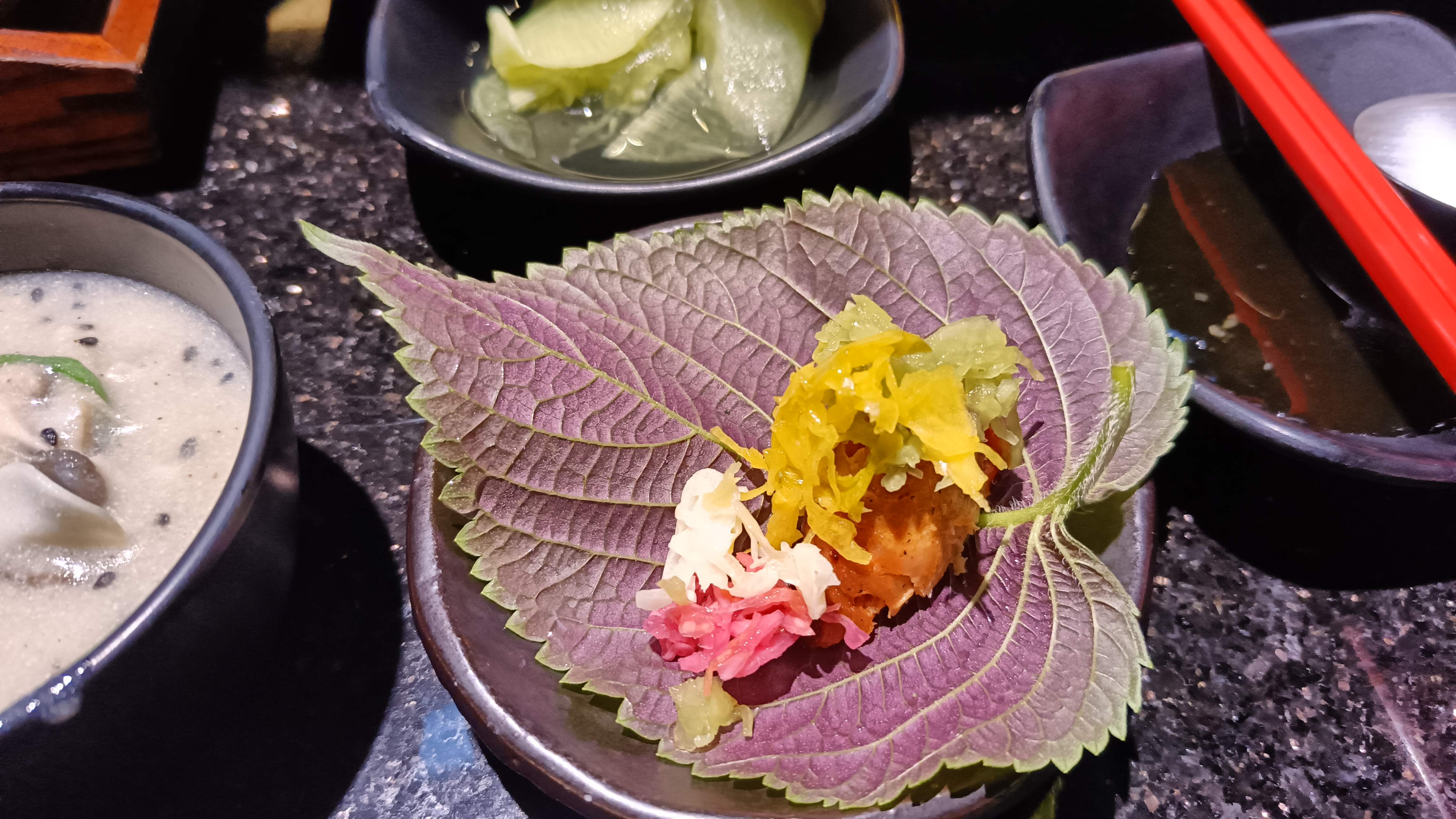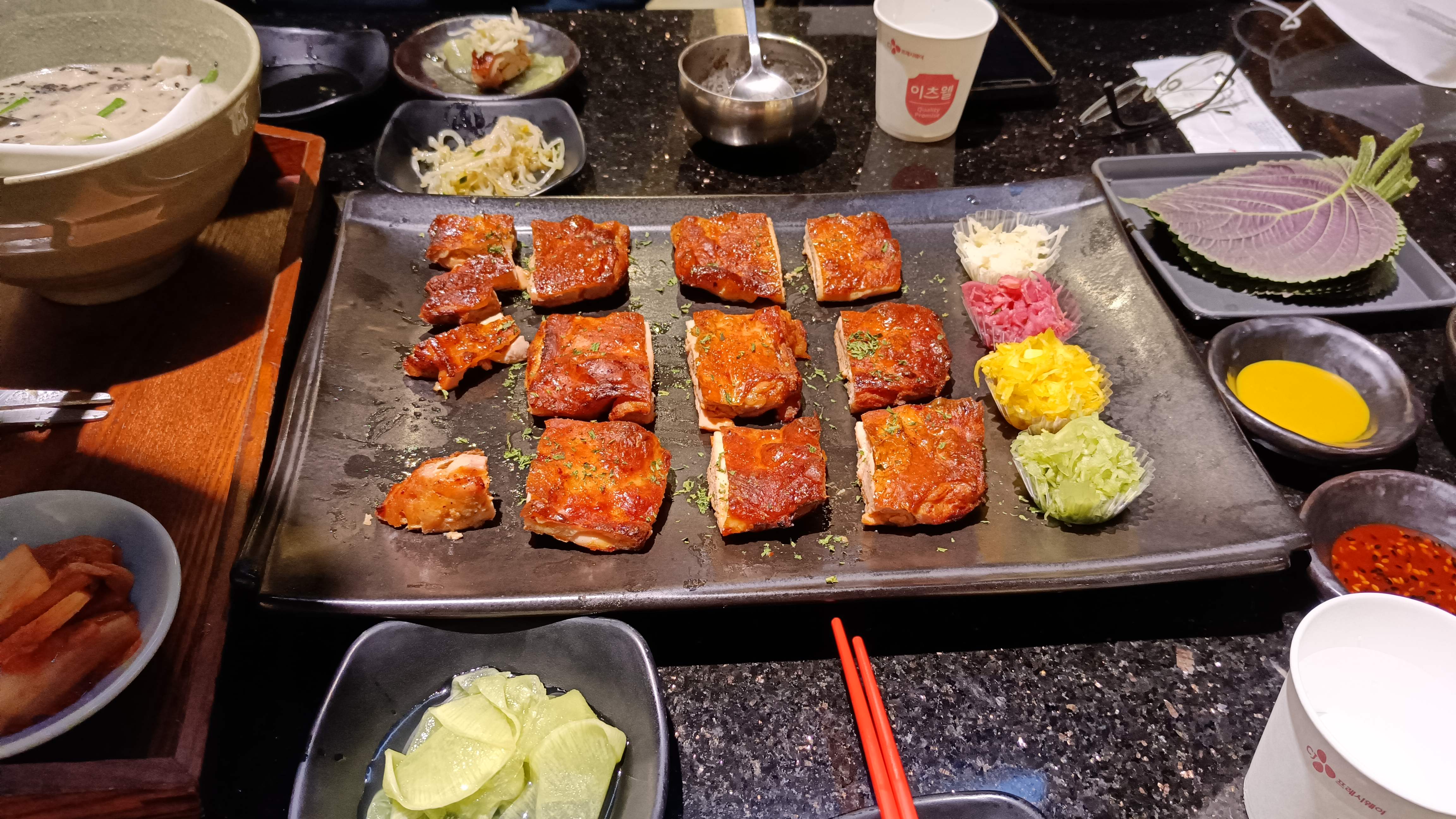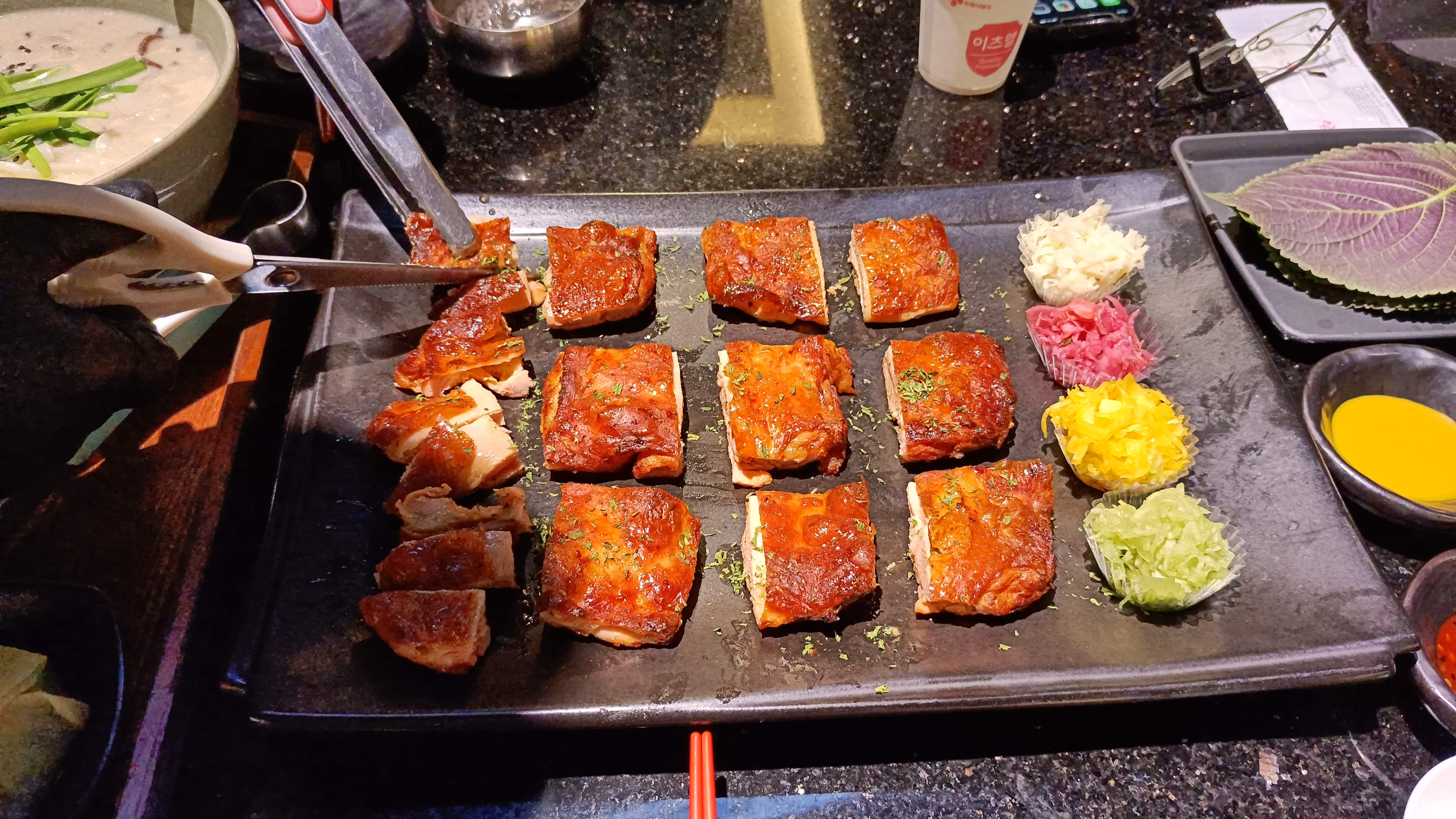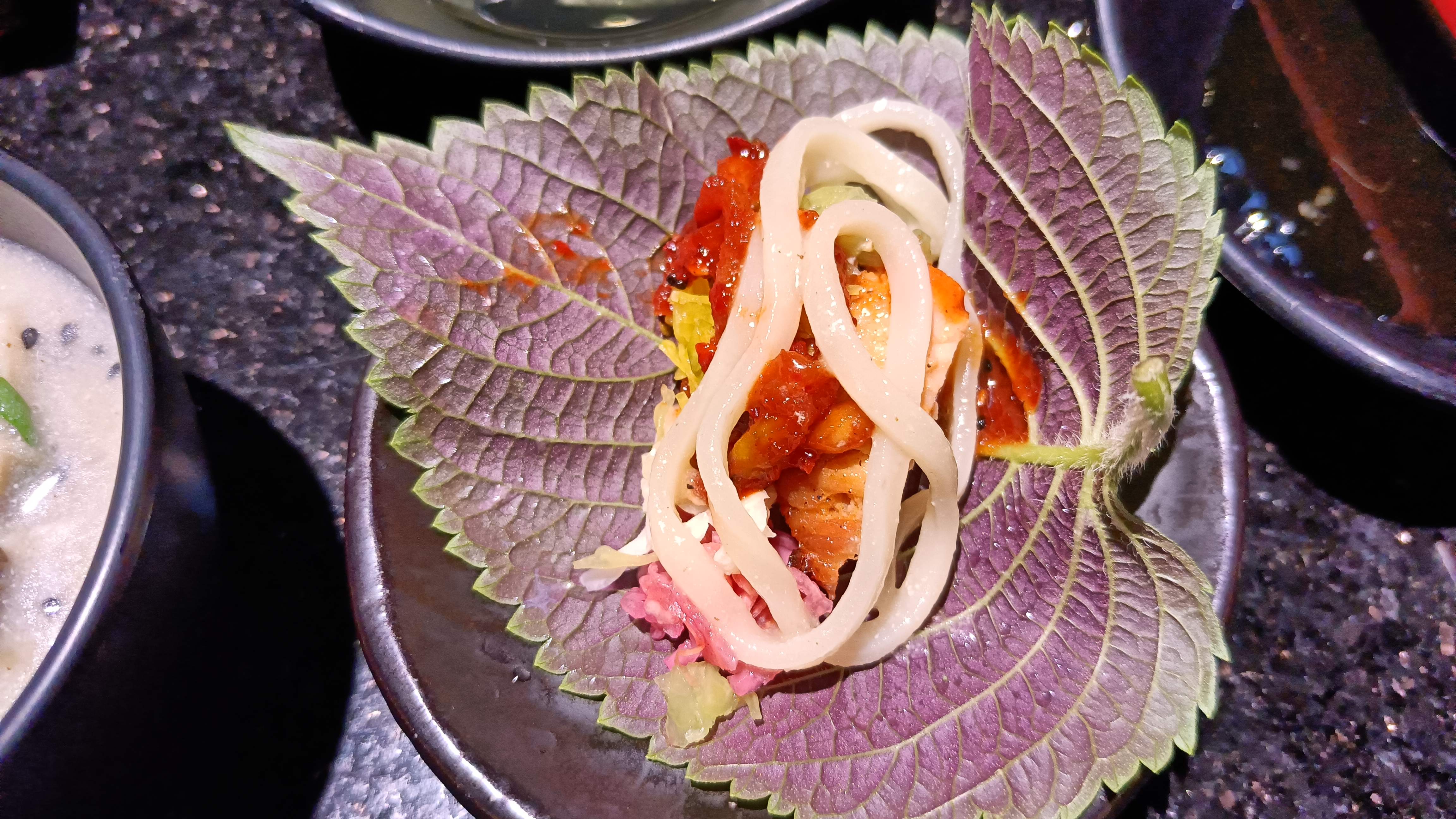 깻잎에 고기와 각종 야채, 소스를 섞어 싸먹는 방식이다.