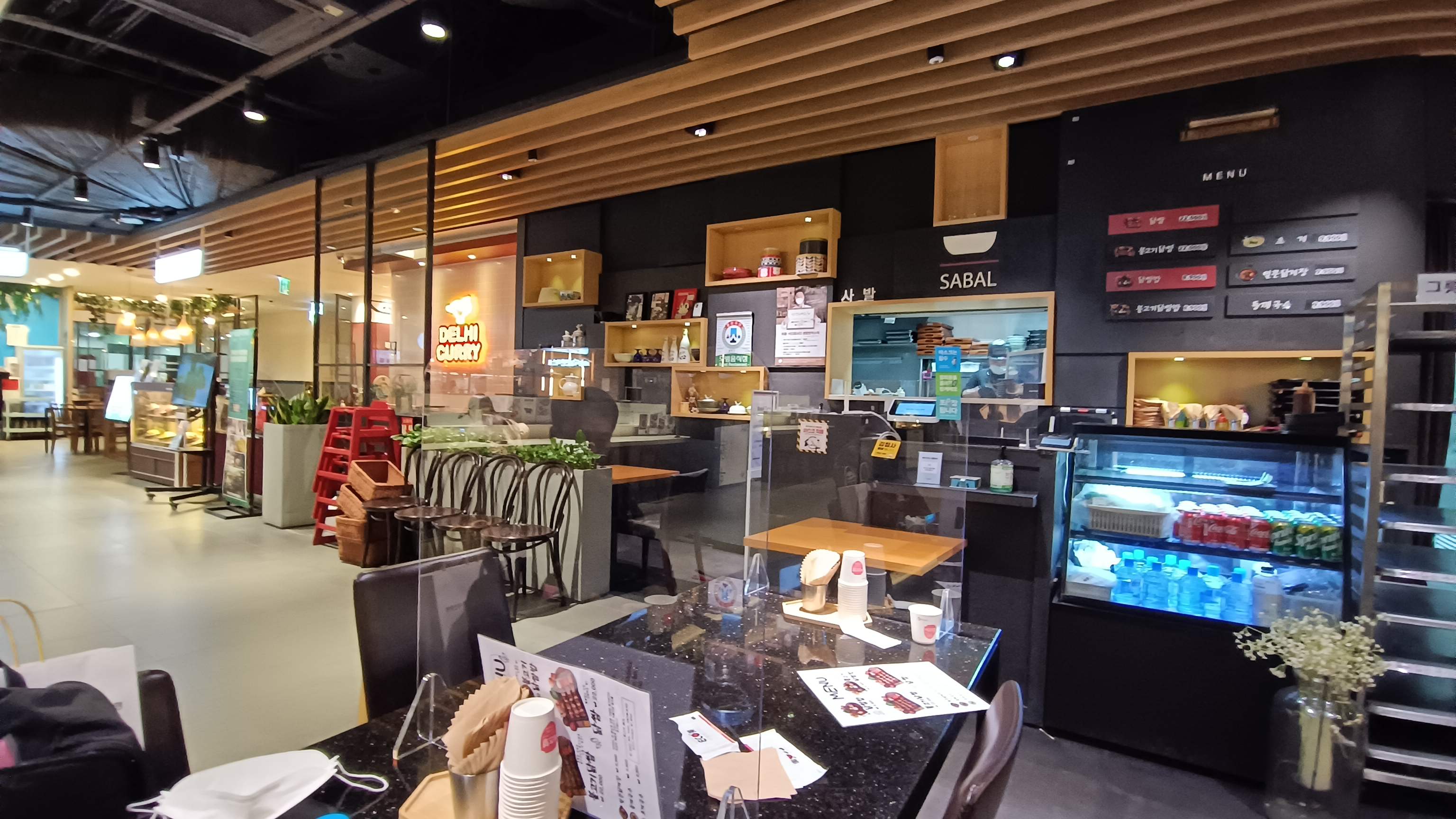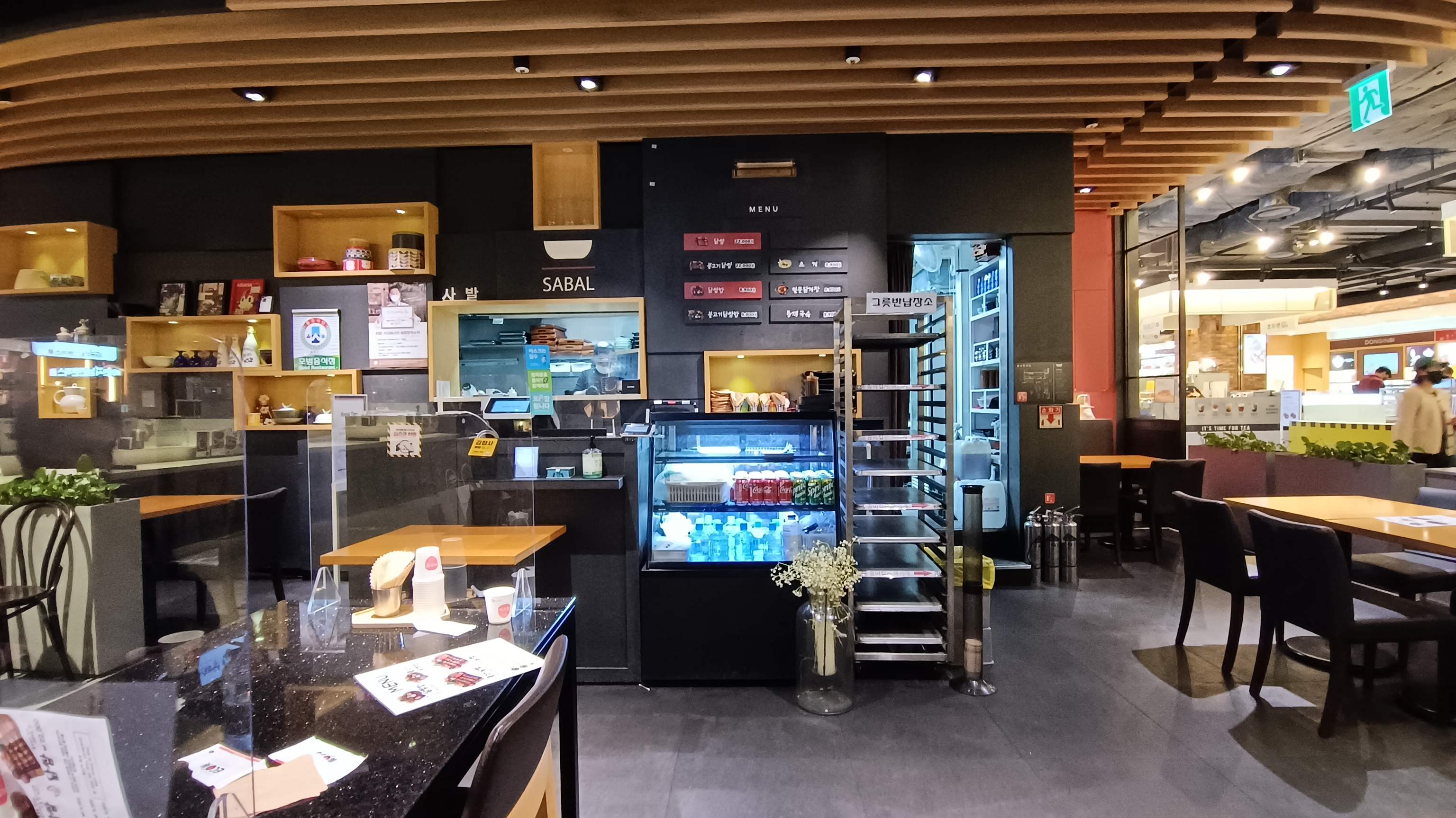 이번에는 현대시티몰 지하 푸드코트로 향했다. 사발이라는 이름의 가게가 눈에 띈다.