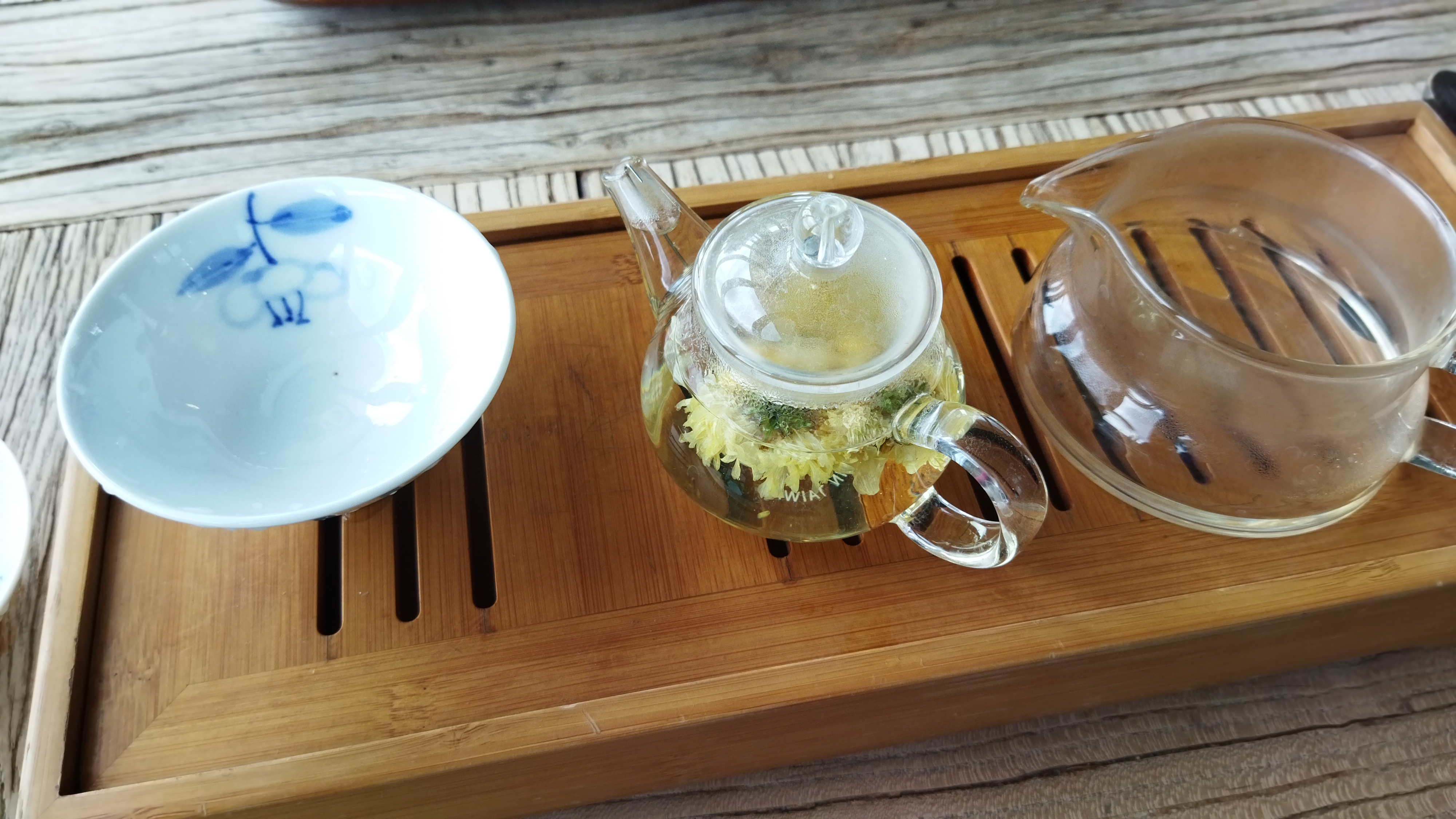 나는 국화차를 마셨는데 맛이 진하고 향이 좋았다.