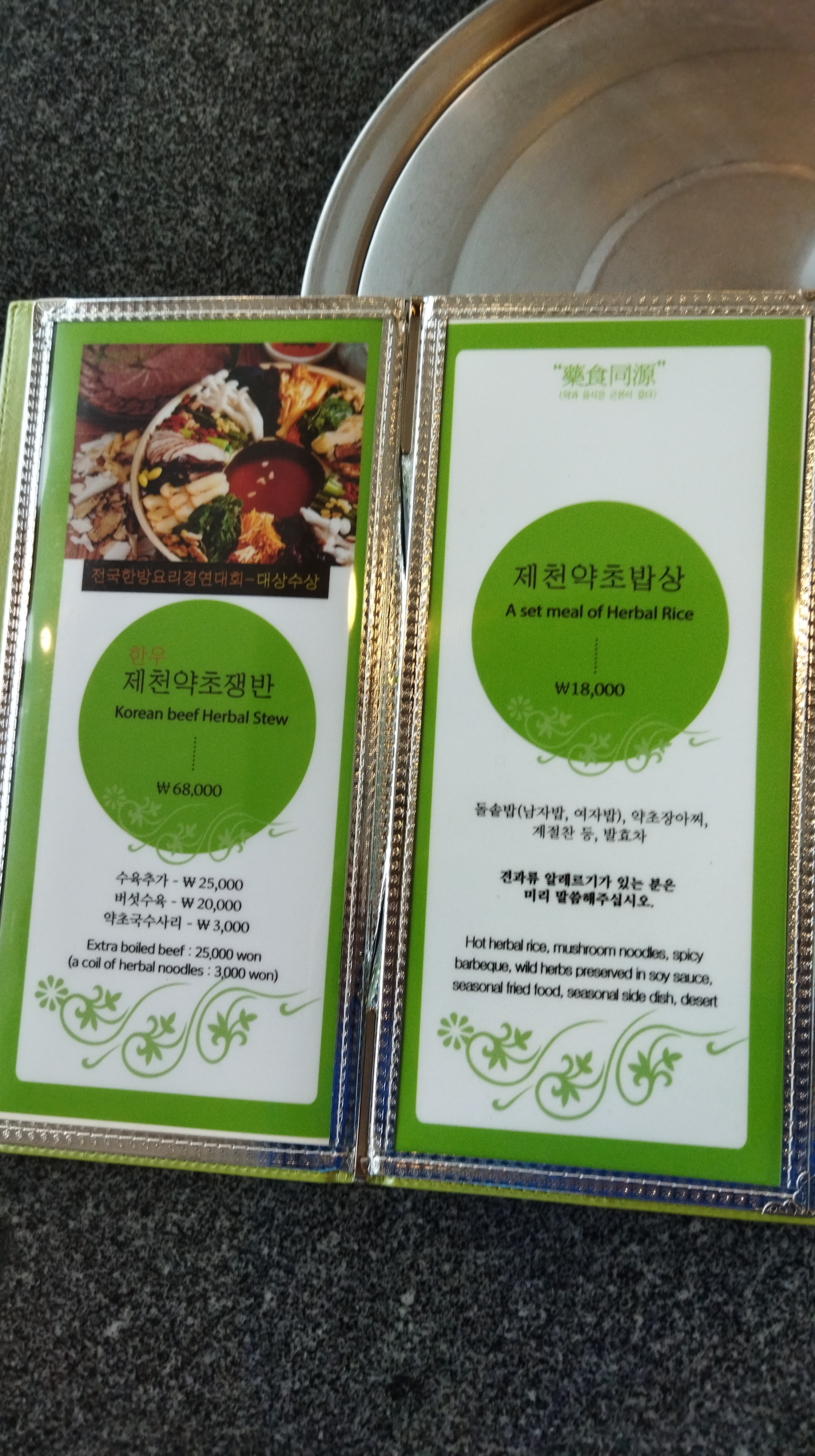 시그니쳐가 제천약초밥상이라고 해서 이걸로 시켰다.
