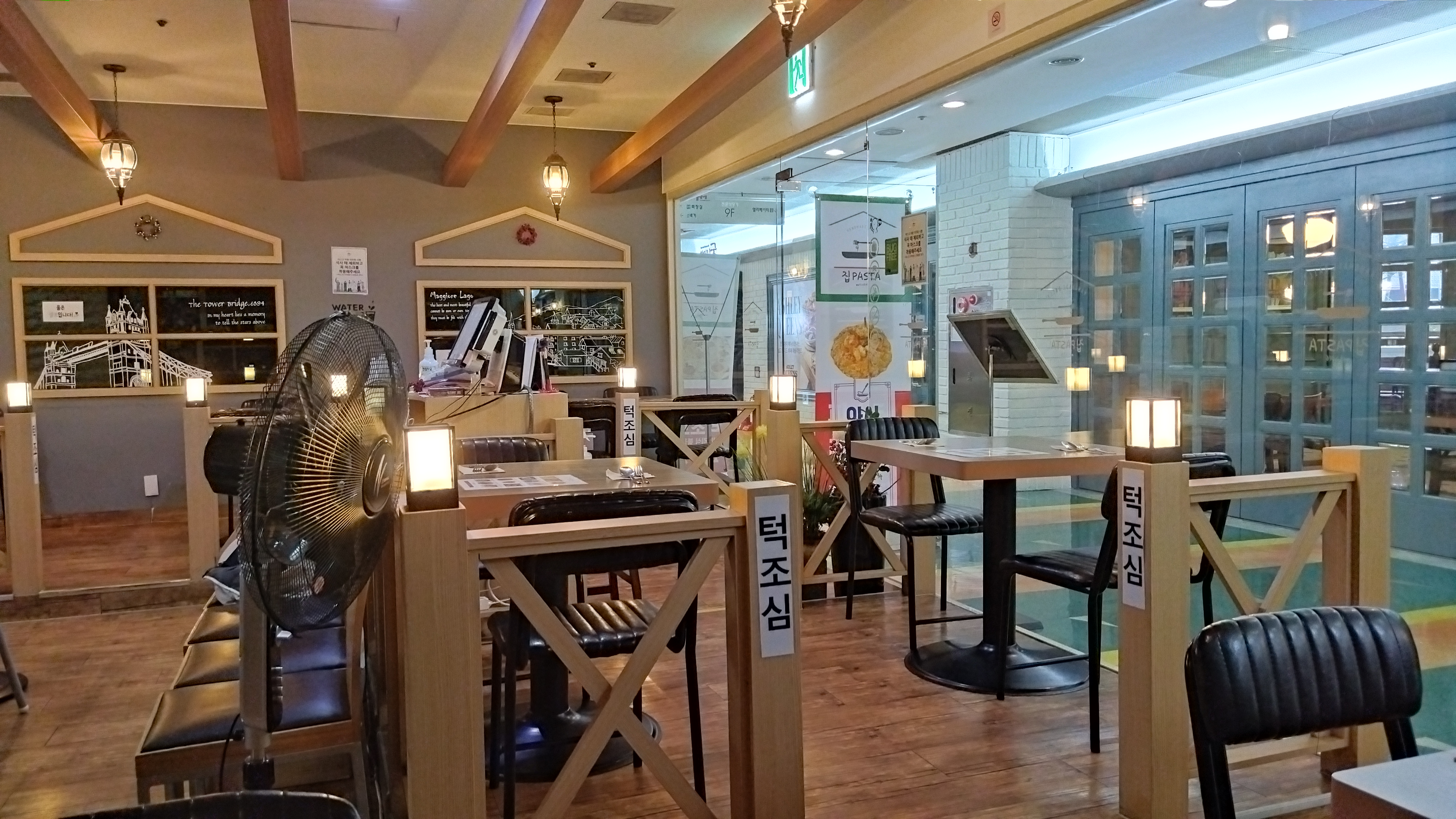 테크노마트 강변역점에는 9층과 지하 1층에 식당가가 있는데 코로나로 인해 9층은 절반 정도가 폐업한 상태. 그러나 애슐리, 커피빈 등 남아 있는 곳도 많다.