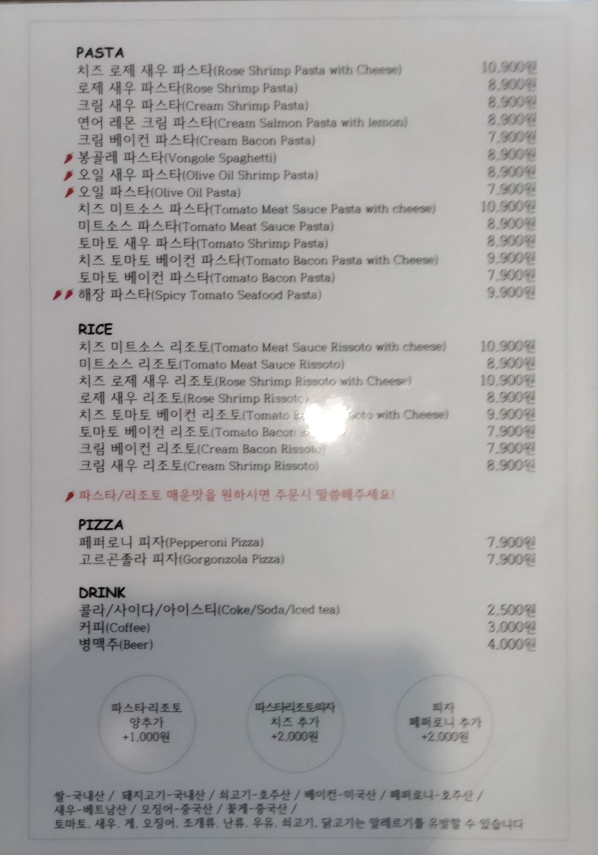 파스타를 7,900원~10,900원에 먹을 수 있다. 나는 이번에 미트소스 파스타를 시켰다. 8,900원.