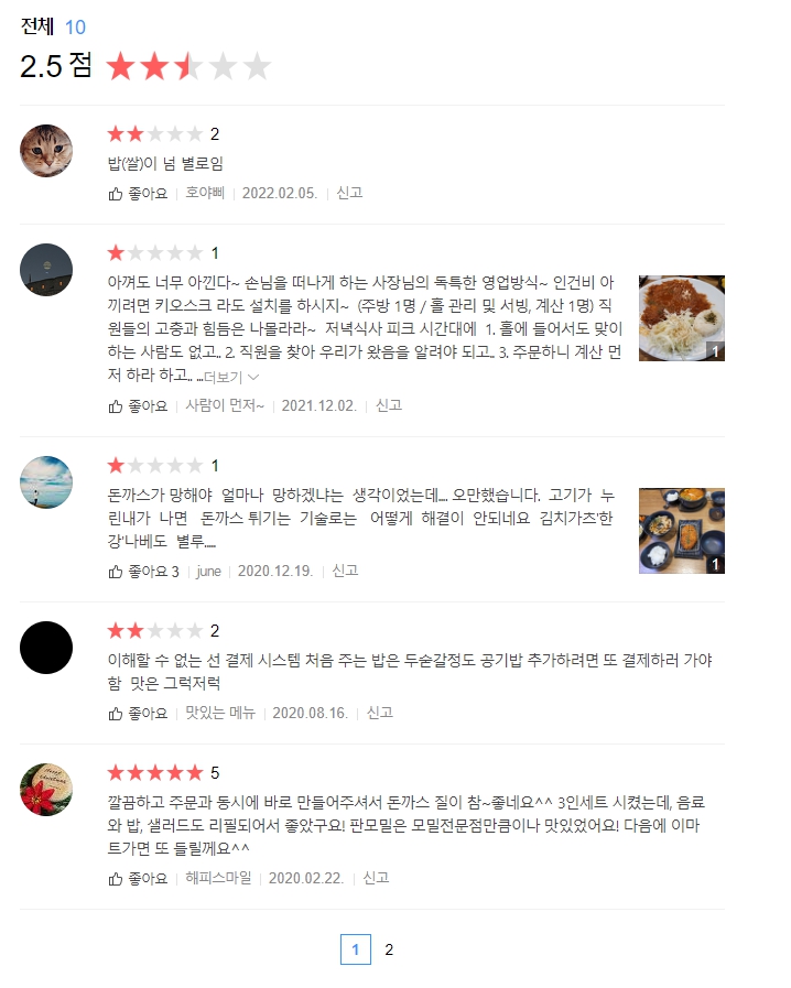 평점은 생각보다 낮은 편. 나는 한가할때 가서 몰랐는데 서비스에 문제가 있는 듯하다. 나로서는 3.5개 정도는 주고 싶다.