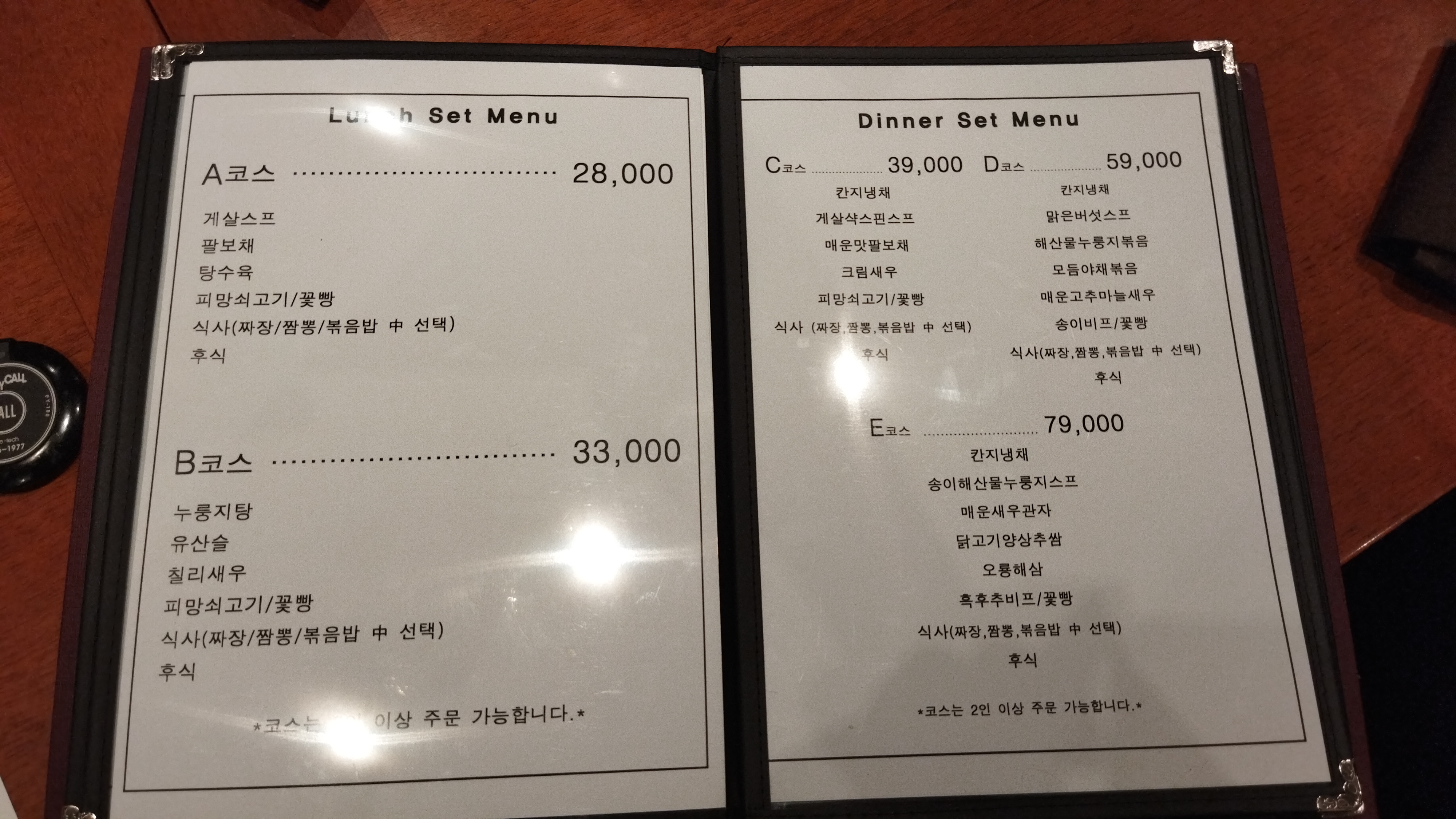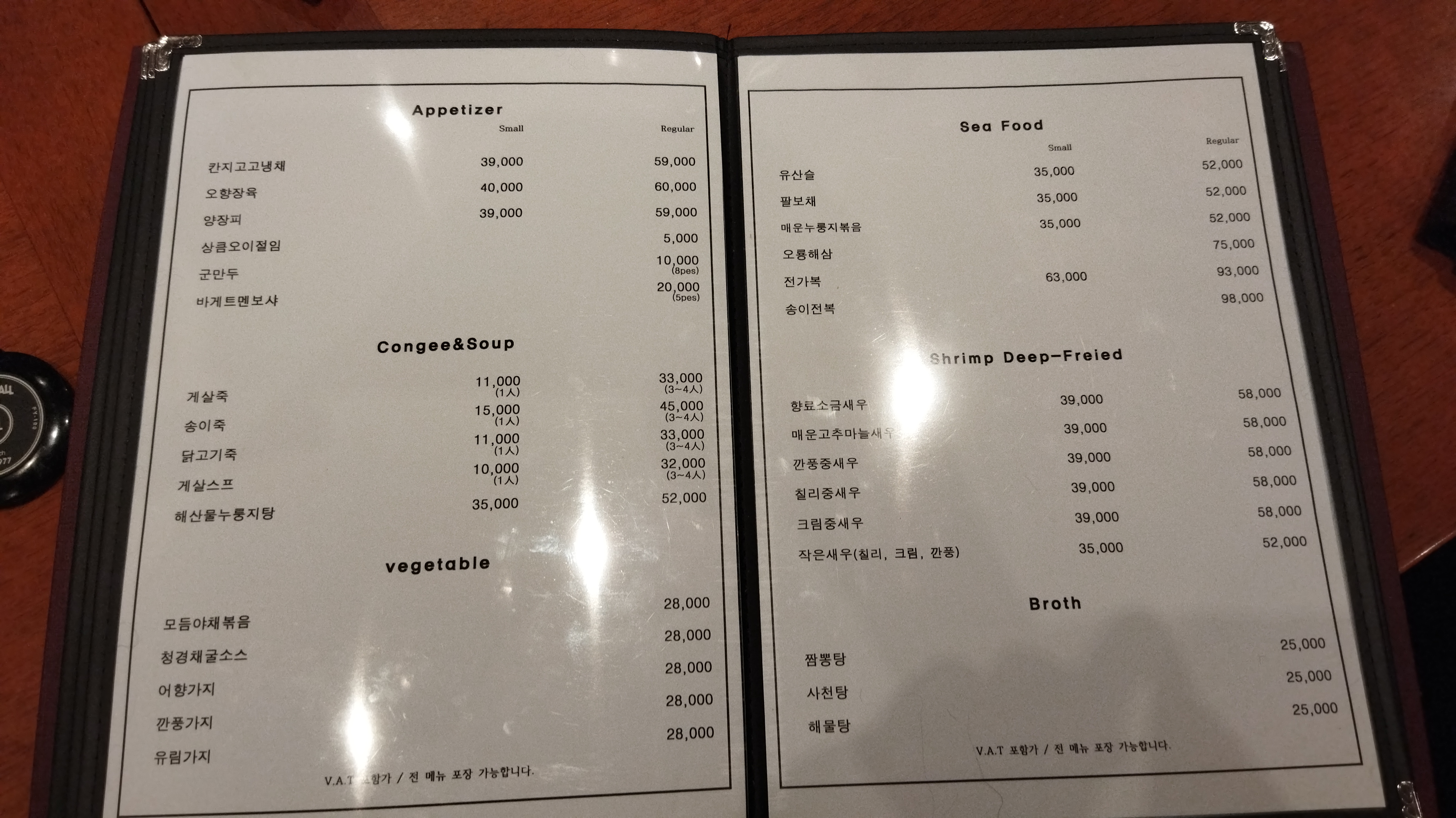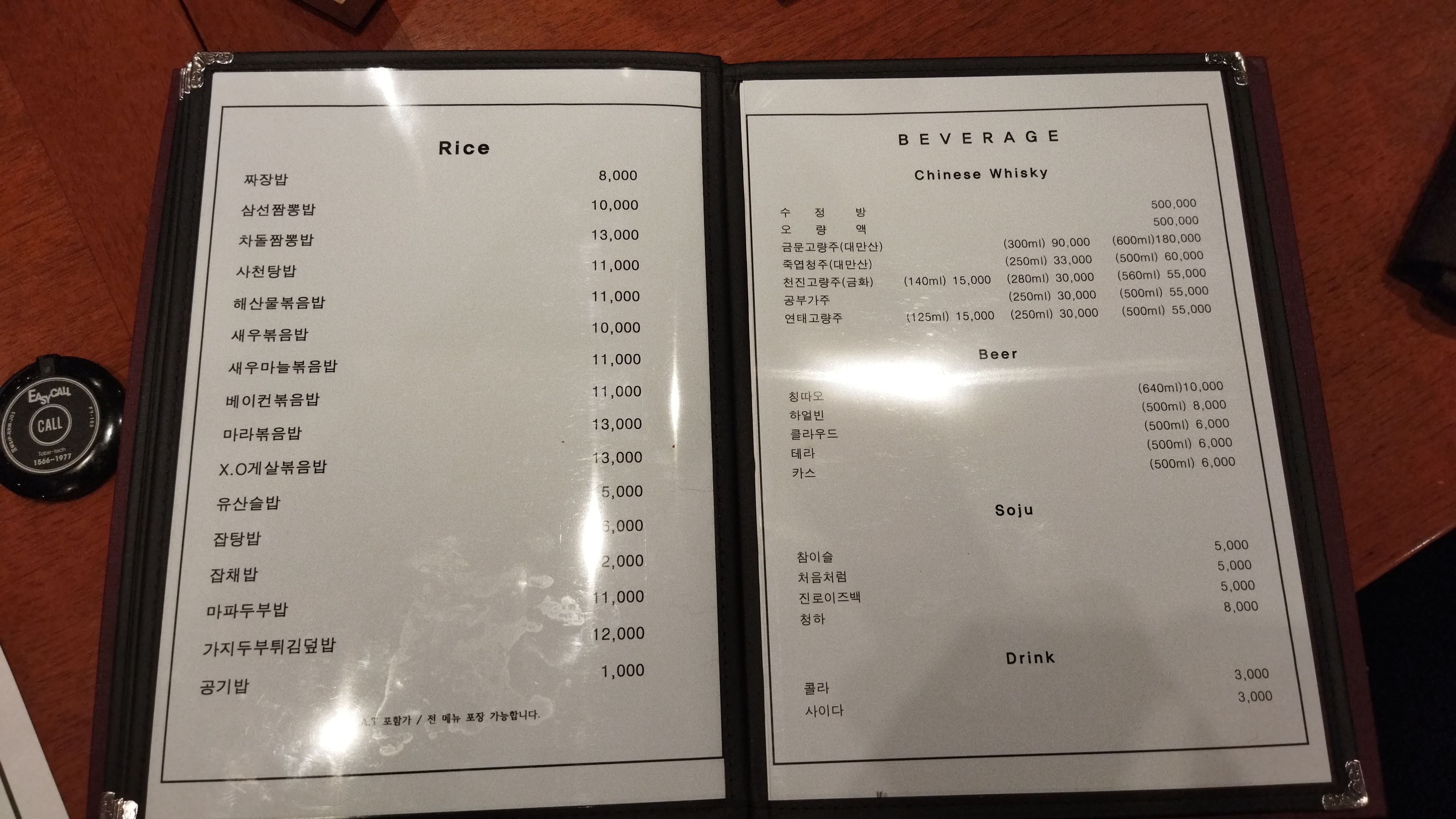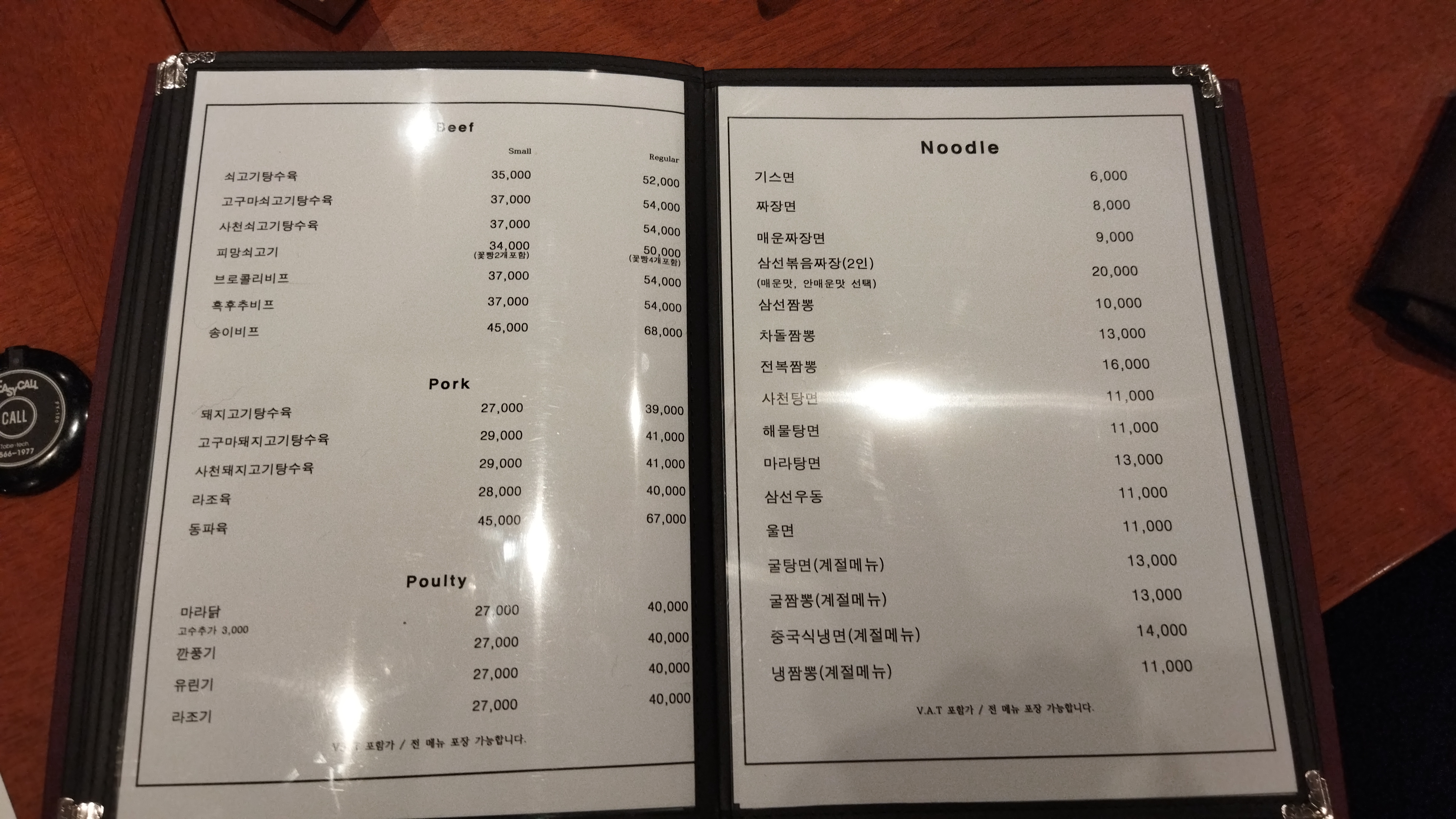 4명이 갔는데 깐풍기 스몰 27,000원, 돼지고기 탕수육 스몰 27,000원, 깐풍가지 28,000원, 해물탕면 11,000원을 시켰다.
