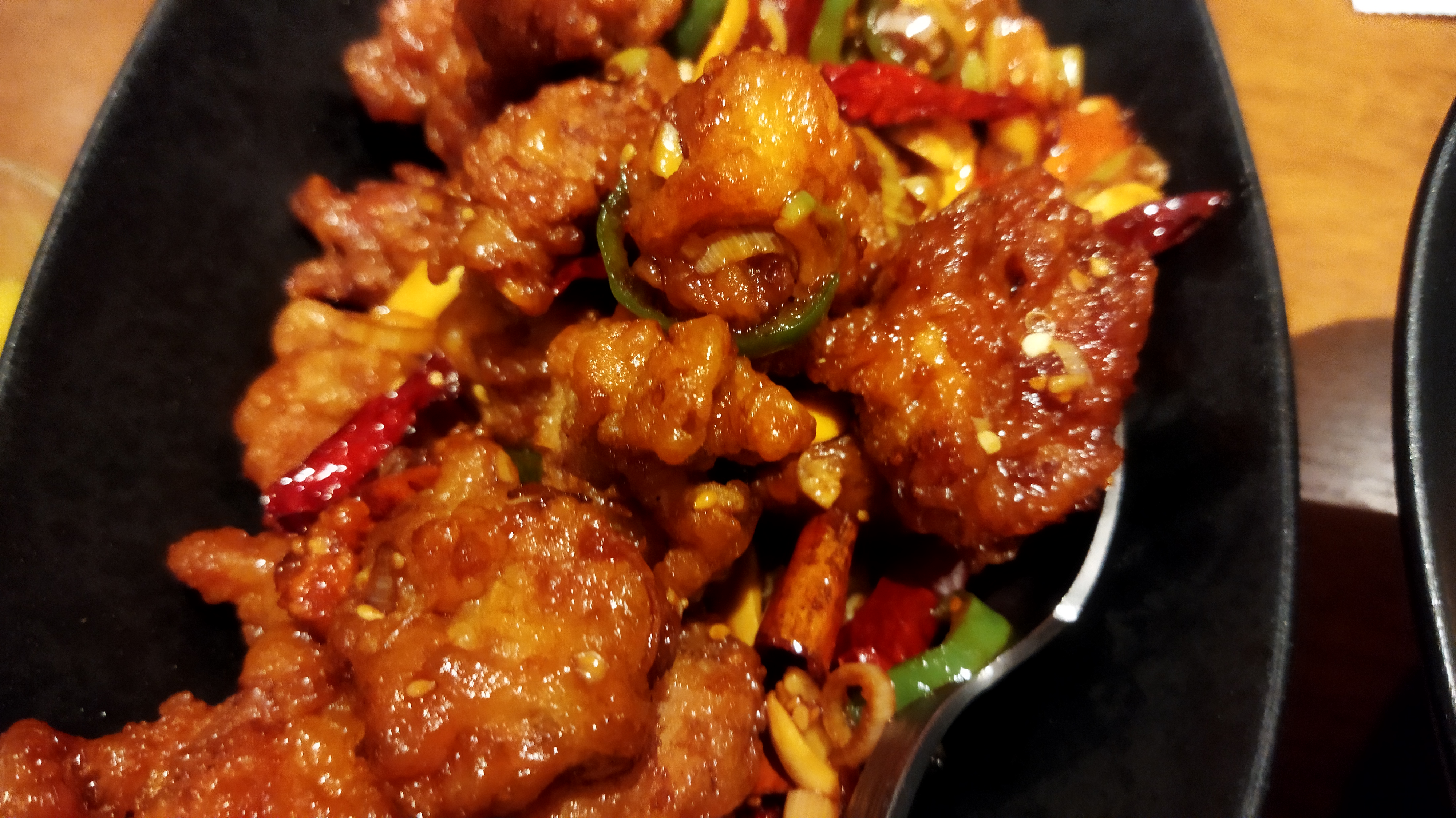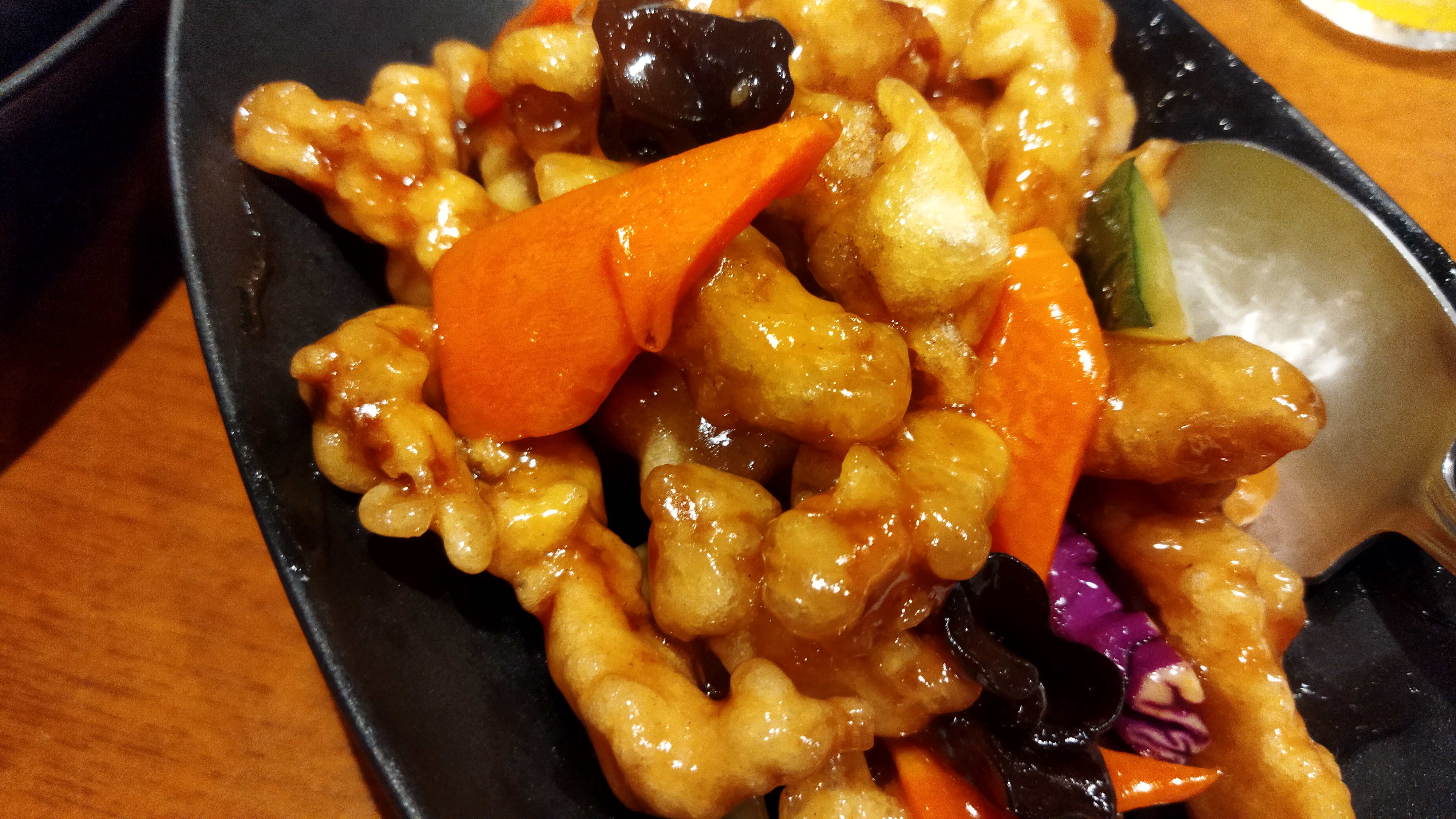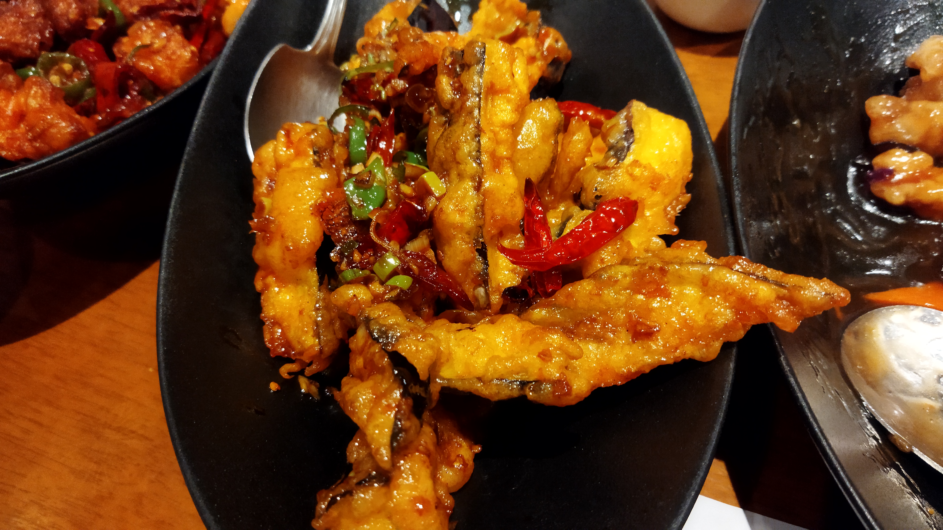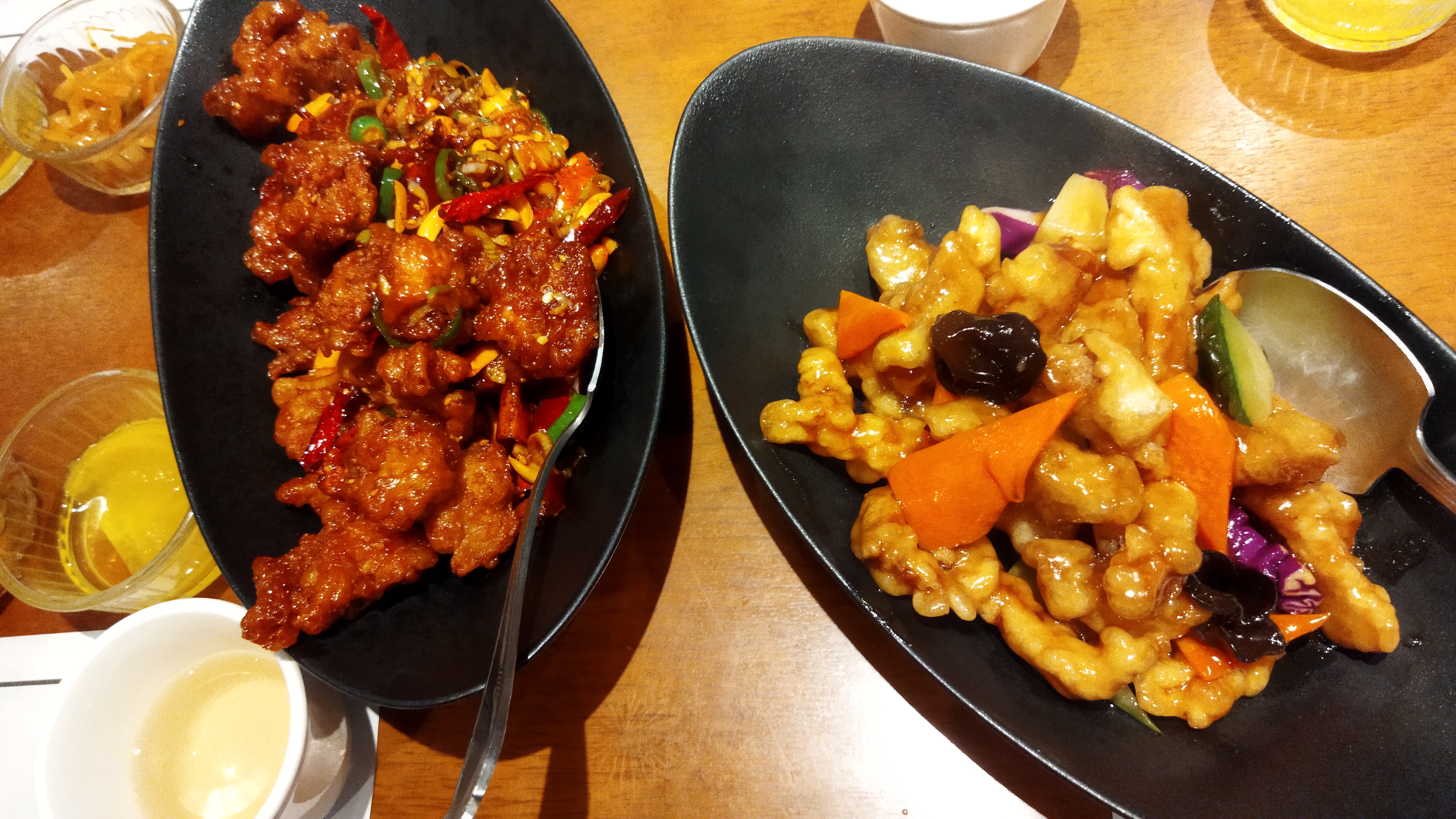 4명이 갔는데 깐풍기 스몰 27,000원, 돼지고기 탕수육 스몰 27,000원, 깐풍가지 28,000원, 해물탕면 11,000원을 시켰다.