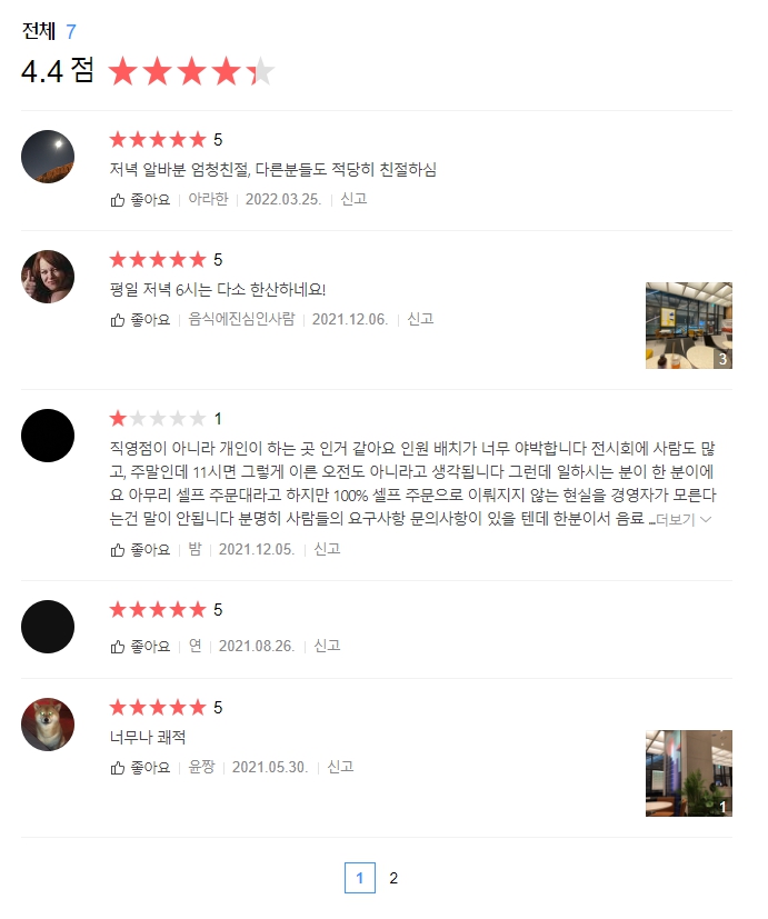 평점도 꽤 높은 편. 나도 별 4개 이상은 주고 싶다. 도심에서 이렇게 쾌적하게 가성비를 즐길 수 있는 곳이 많지 않기 때문이다.