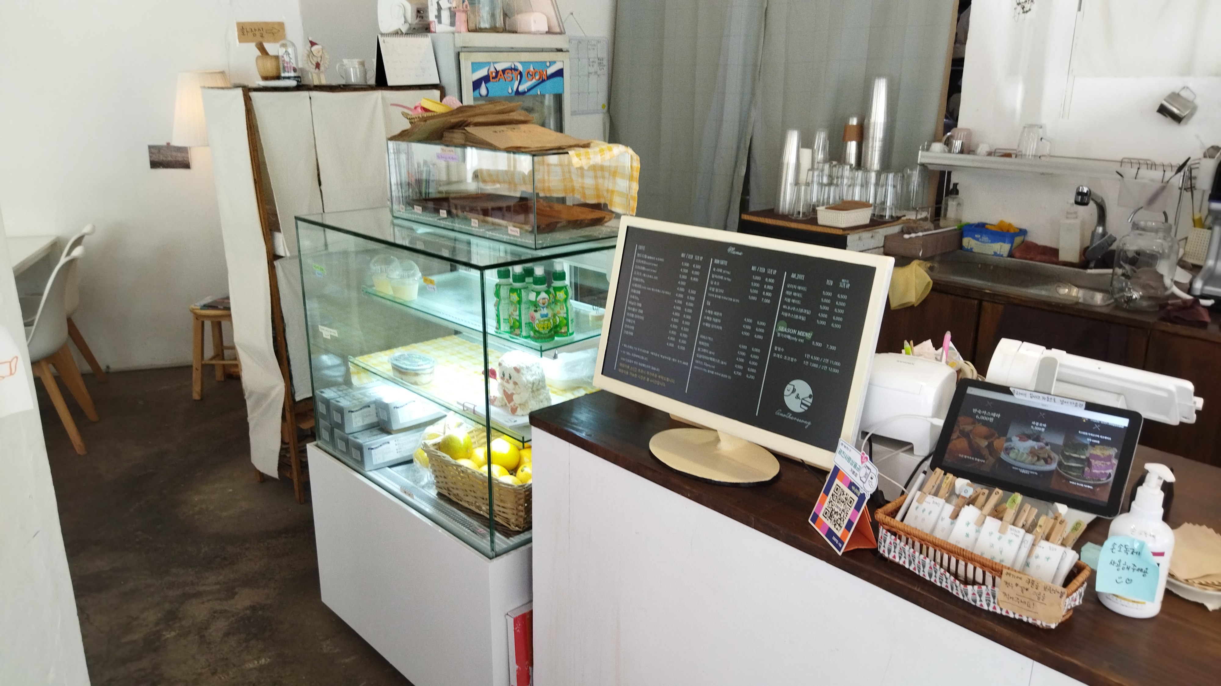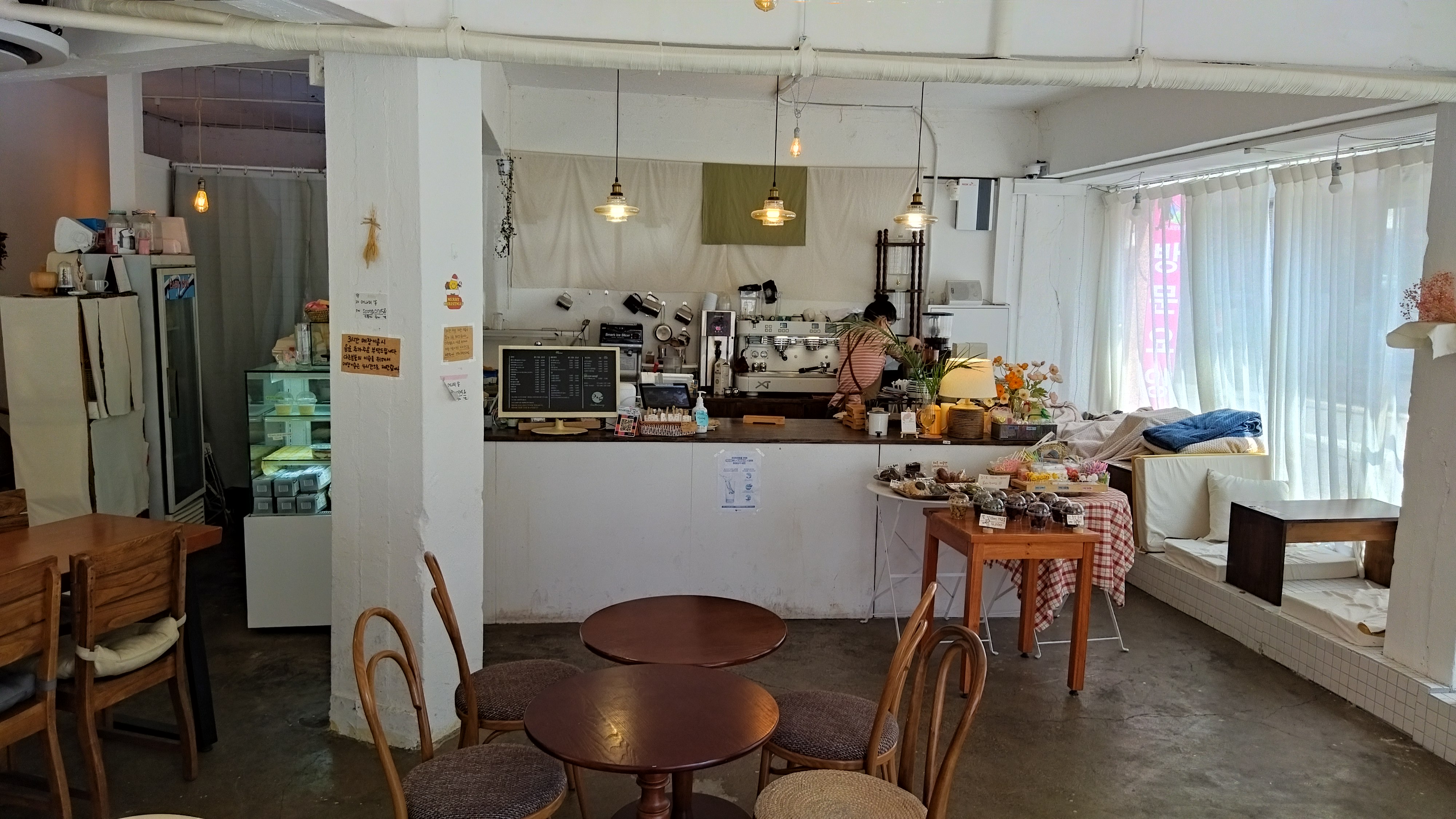 소소하고 효율적인 인테리어에 빵도 함께 팔고 있다.