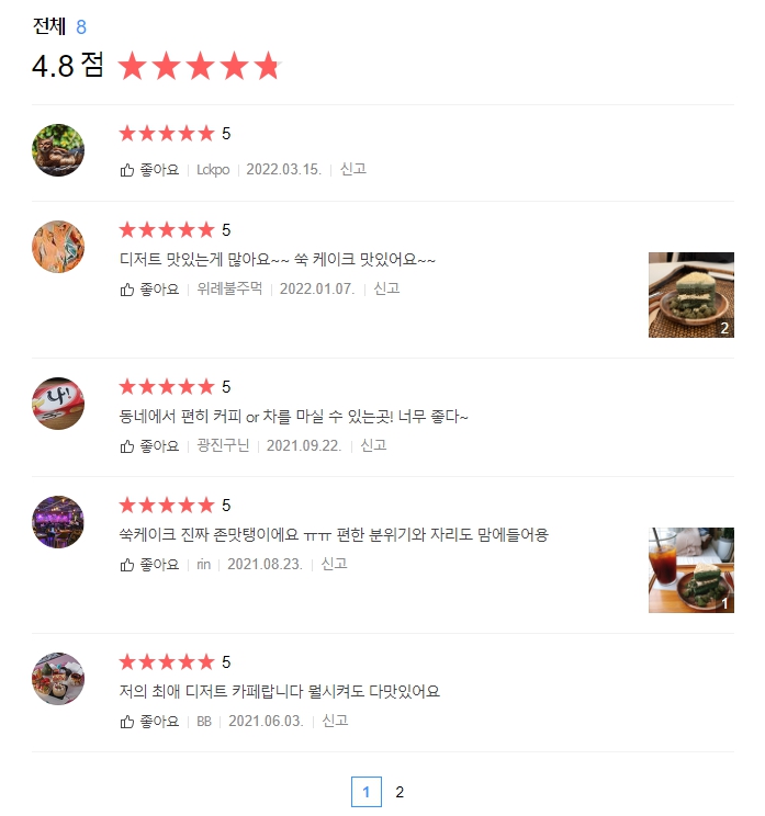평점은 갯수는 적지만 높은 편. 내 평점도 4점이다. 디저트도 맛있는 듯하다.