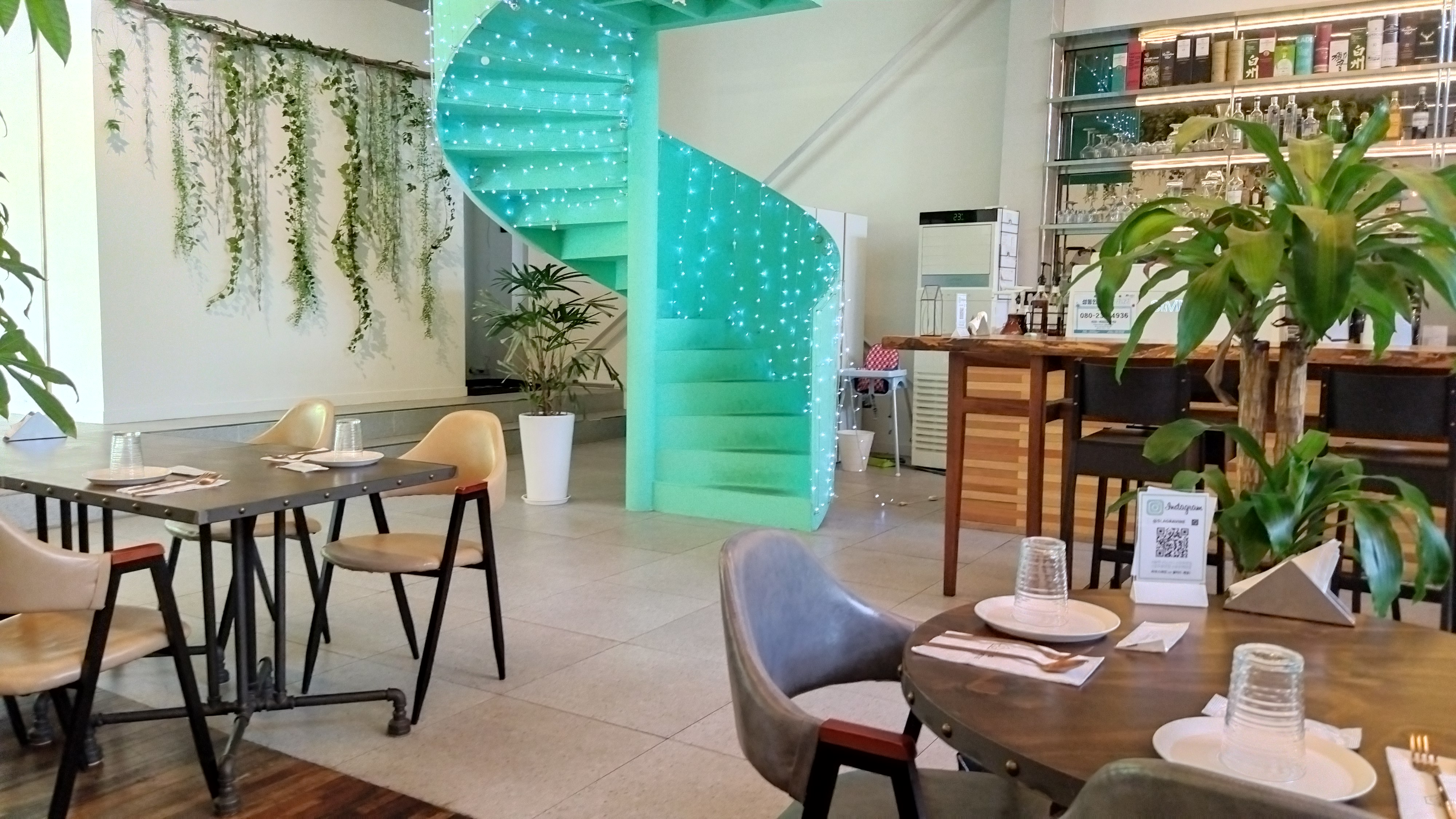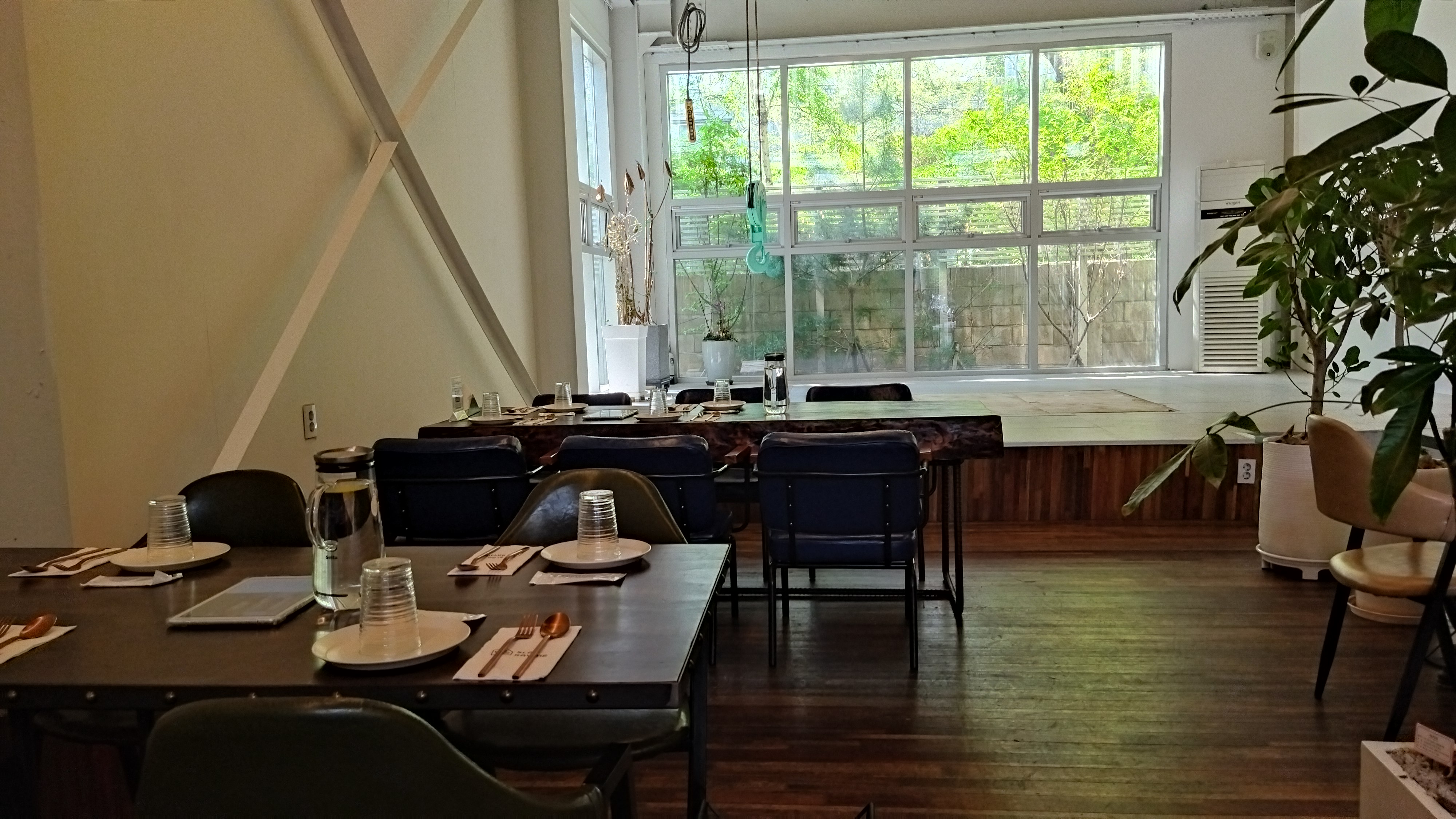 모던한 인테리어에 채광이 좋아 밝은 느낌의 레스토랑이다.
